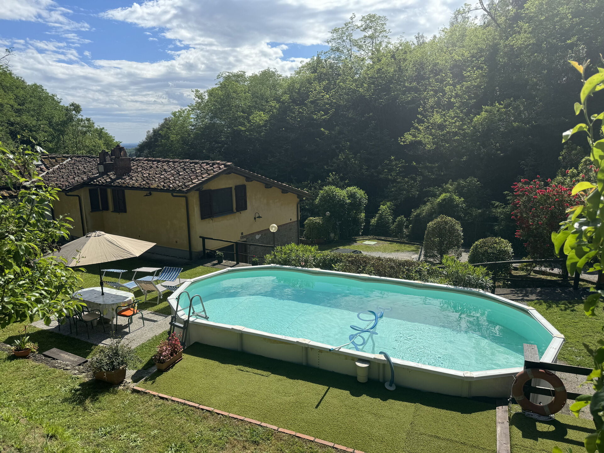 Wir wurden sehr freundlich vom Besitzer bei der Anreise empfangen. Die Ausstattung reicht völlig aus für einen gemütlichen, erholsamen Urlaub. Wir durften eine sehr saubere Liegenschaft mit einem großen Auslauf für unseren Vierbeiner übernehmen. Die Wartung und die Reinigung des Pools wurde jeden zweiten Tag durch den Besitzer Paolo vorgenommen. Ansonsten ist man wirklich für sich. Den Nachbar bemerkt man gar nicht, da er meistens abwesend ist. Die Lage der Liegenschaft befindet sich etwas abseits der Straße, welche nach Massa und Cozzile führt. Also keine Lärmbelästigung durch Straßenverkehr etc. Am Abend jeweils eine wunderbare Geräuschkulisse von zirpenden Grillen. Für uns war es eine Oase der Erholung und jederzeit einen nochmaligen Urlaub wert. Leider ist der auf den Bildern zu erkennende Pizzaofen nicht mehr in Betrieb. Preis/Leistung für uns absolut in Ordnung.