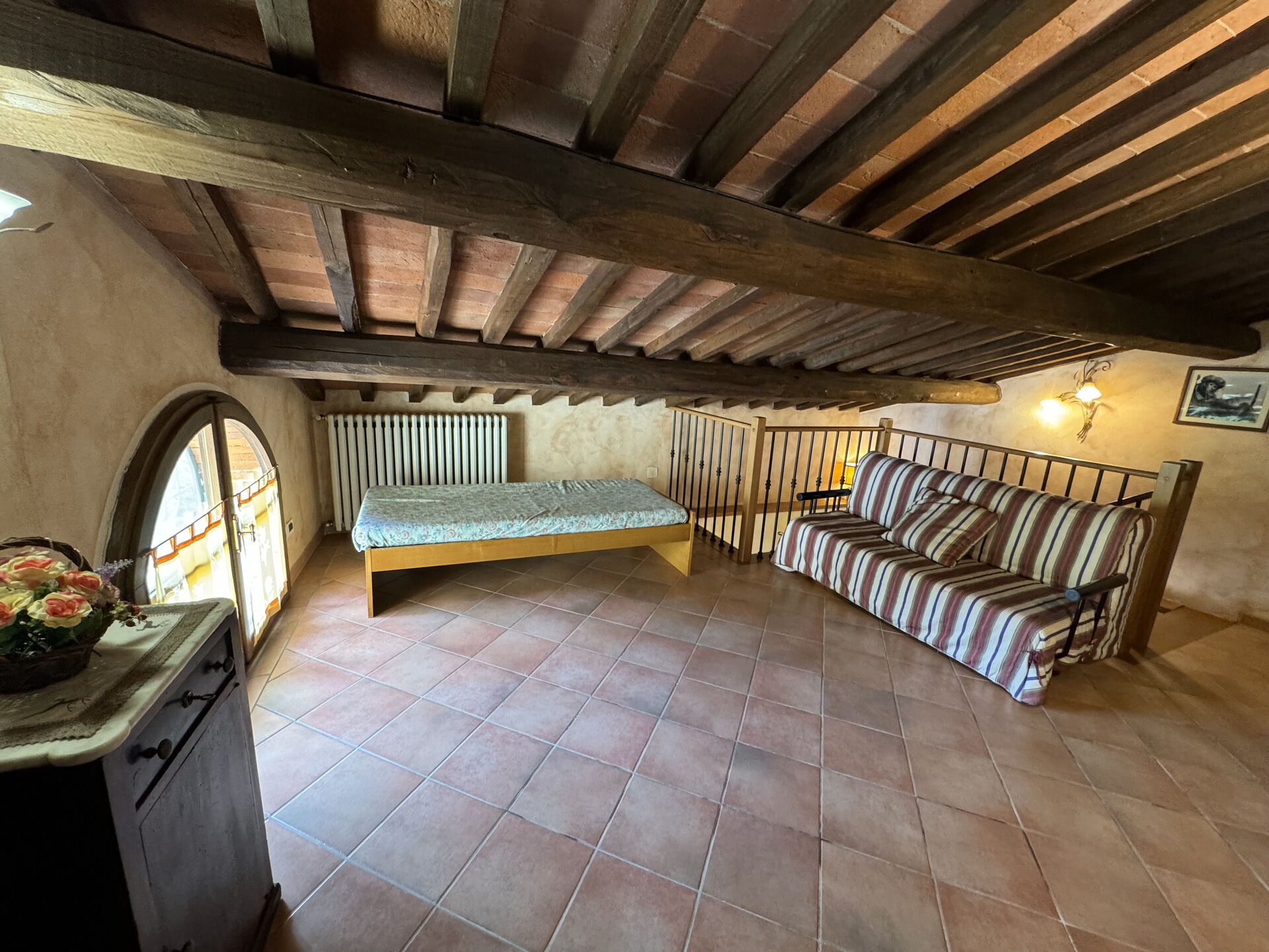 Open space: letto singolo, divano letto matrimoniale.