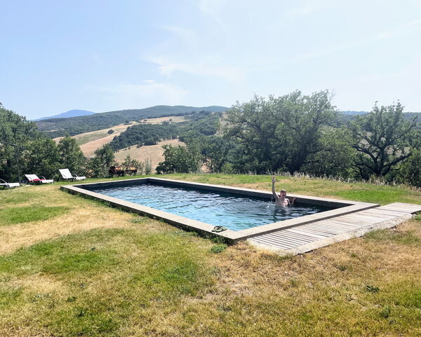 An idyllic location amid glorious farmland with wonderful views across the Val d’Orcia. This is an authentic and carefully restored property which the owners have ensured retains its original character. The owners are delightful, welcoming and at the same time unobtrusive. The pool has a natural appearance which blends perfectly and sunsets are spectacular. Perfect for our family reunion for two couples and two children.