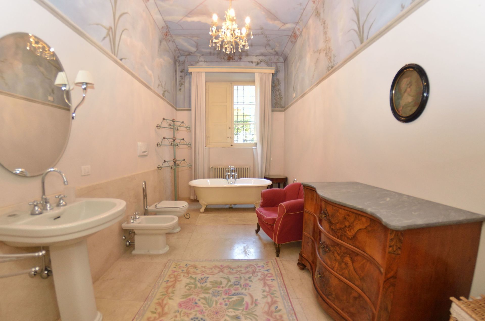 Bagno 3: lavandino, wc, bidet, vasca da bagno.