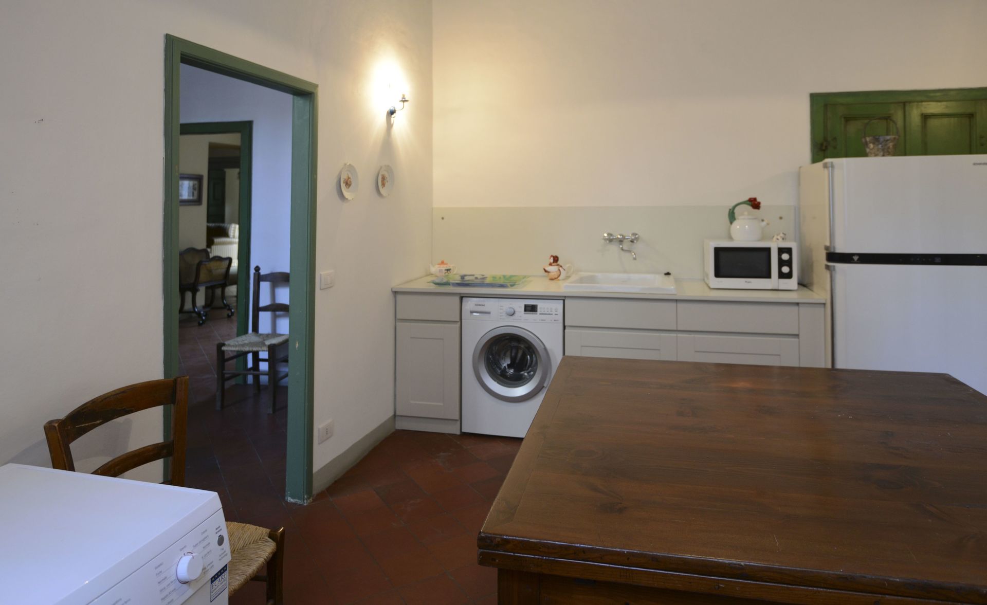 All'arrivo troverai una incantevole casa vacanze pulita e in ottime condizioni, ideale per una rilassante vacanza in Toscana. A prescindere da come trascorrerai le tue giornate - visitando i più famosi musei della zona, imbarcandoti in gite fuori porta, facendo shopping o semplicemente guidando nell'entroterra, quando arriverai a casa la sera avrai la possibilità di riposarti con famiglia e amici concludendo in bellezza un altro fantastico giorno di vacanza in Toscana. Mangiare in compagnia di famiglia e amici è un grosso aspetto della cultura toscana. Approfitta della cucina ben accessoriata per preparare pasti utilizzando prodotti locali freschi e genuini mentre ti trovi in vacanza. La cucina è provvista di macchinetta del caffè, tostapane, fornelli e frigorifero, così come un numero sufficiente di stoviglie e posate per un massimo di nove persone. Pranza o cena all'aperto, la veranda completamente accessoriata è la cornice ideale per godersi del buon cibo, la compagnia della propria famiglia o gruppo di amici e l'incantevole clima toscano.