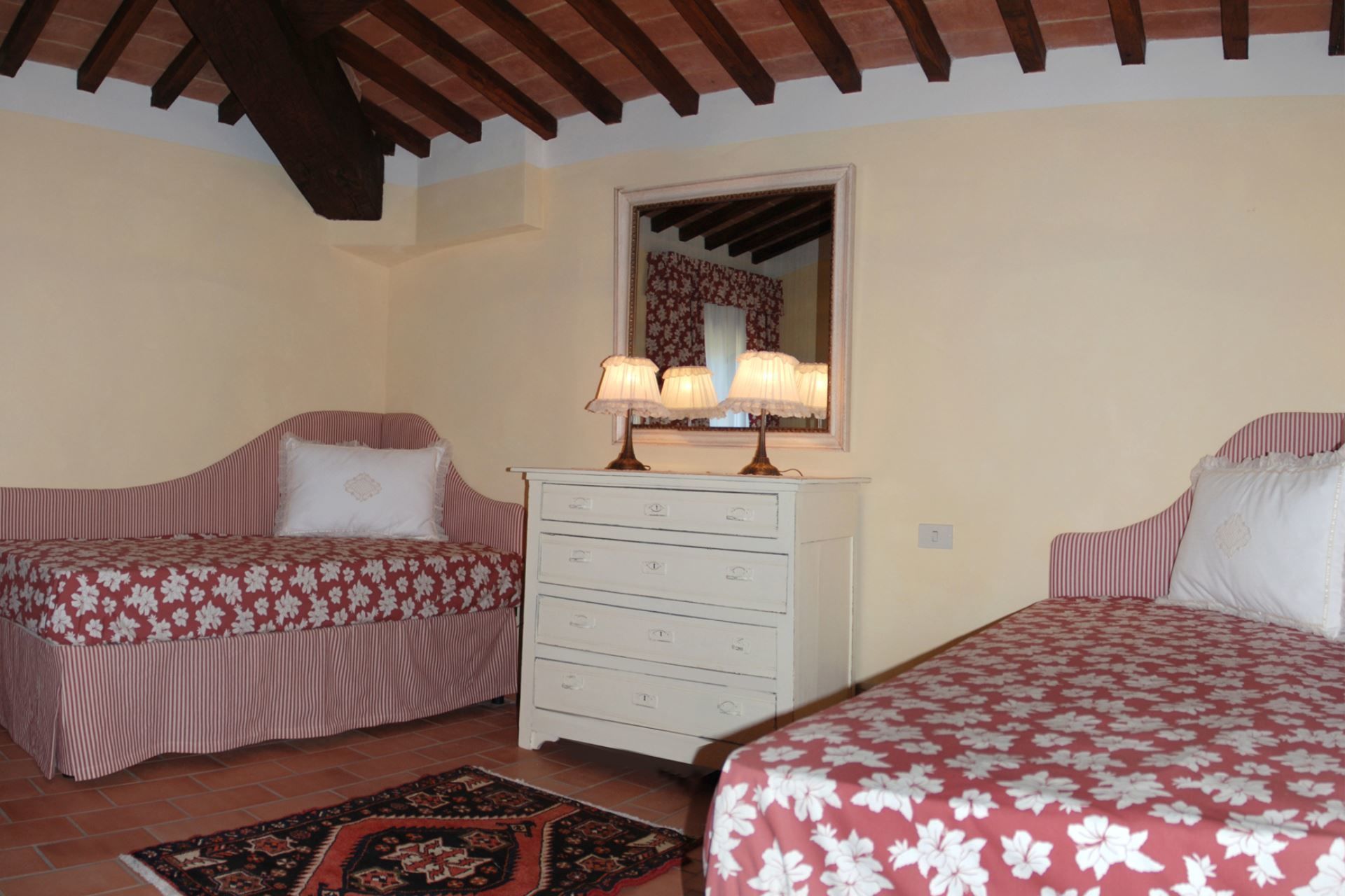 La proprietà comprende 62 ettari, è situata in posizione panoramica e tranquilla, e mette a disposizione degli ospiti 2 casali dove si trovano in totale 8 eleganti appartamenti e 2 suites con bagno privato, per un totale di 33 posti letto. Ogni appartamento dispone di uno spazio esterno privato arredato con tavolo e sedie, dove trascorrere rilassanti serate in compagnia sorseggiando un buon bicchiere di vino.