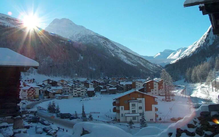 Apartmenthaus Alpenrose sorge nella parte settentrionale del villaggio di Saas-Almagell, in Svizzera. L'appartamento si estende su 92 metri quadri ed è situato al piano terra nell'ala est della struttura, con capacità di 6 ospiti distribuiti in 3 camere da letto matrimoniali, ciascuna dotata di toilette e doccia privata. La zona living e la sala da pranzo si collegano a una cucina completamente attrezzata con forno, microonde, piano cottura a induzione, lavastoviglie, frigorifero e macchina per il caffè; sono presenti anche una fonduta e una raclette. L'appartamento dispone di radio, televisore a schermo piatto e Swisscom TV.