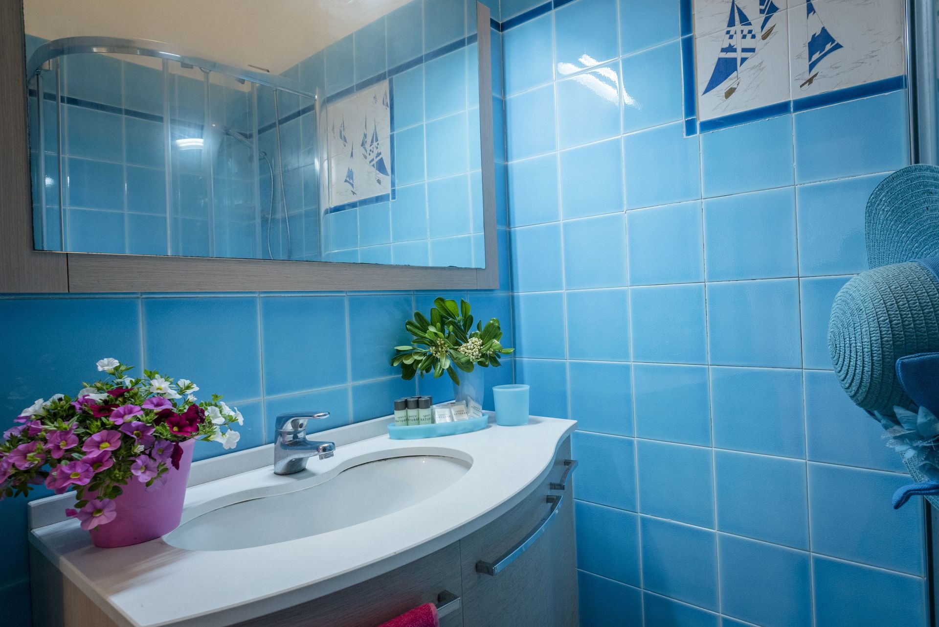 Bagno: lavandino, wc, bidet, doccia, asciugacapelli.
