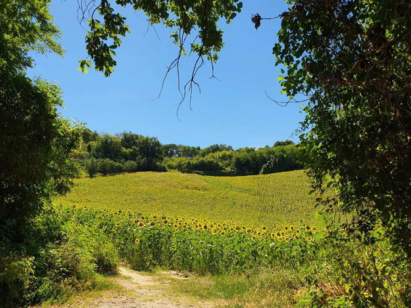 Casamare Gabicce è una casa vacanze rustica e ricca di storia, risalente al XVII secolo, situata all'interno del Parco San Bartolo in provincia di Pesaro. La proprietà, che forma parte di una residenza composta da 8 appartamenti, occupa una posizione riservata e soleggiata in cima a una collina, circondata da prati lussureggianti e campi aperti, sopra la Baia Vallugola. Dista 2,7 km dal centro di Gabicce Monte e 13 km dalla città di Pesaro, offrendo un equilibrio tra la tranquillità della campagna e l'accesso ai servizi della regione. La casa dispone di spazi comuni che includono un giardino in stato naturale, un prato e una piscina stagionale.