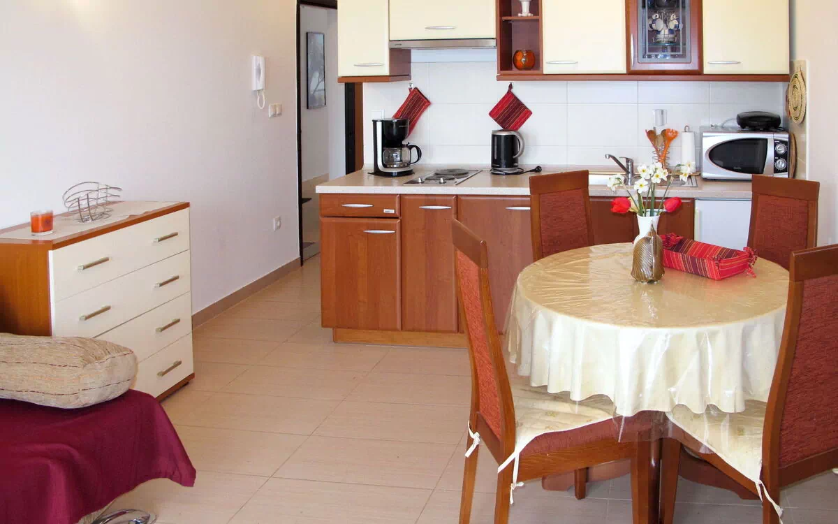 "Mira (PUL406)", apt. di 2 locali 35 m2, al pianterreno. Soggiorno/sala da pranzo con 1 divano letto doppio (150 cm), TV (satellite) (schermo piatto), climatizzazione. Uscita sulla terrazza. 1 camera con 1 letto matrimoniale (160 cm). Cucina aperta (2 punti cottura, tostapane, bollitore elettrico, forno a microonde, macchina da caffè elettrica). Doccia/bidè/WC. Climatizzazione (extra). Balcone. Mobili da balcone. A disposizione: lavatrice. Parcheggio (1 Auto). Prego notare: appartamento per non fumatori.
