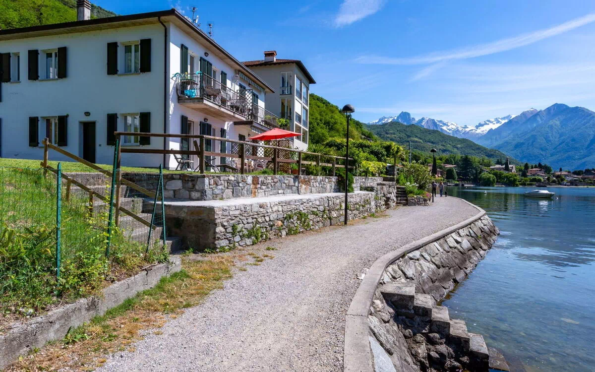 Casa plurifamiliare "Patrizia", su 2 piani. 4 appartamenti nella proprietà. Nella frazione Cinque Case, a 1.5 km dal centro di Gera Lario, in periferia, a 49 km dal centro di Lecco, a 58 km dal centro di Como, a 20 m dal lago, accesso diretto alla spiaggia. In comune: terreno, giardino terrazzato con alberi, prato. Barbecue. Scalinata (18 scalini) fino a la casa. Negozio 1.5 km, supermercato 2.2 km, fermata bus 500 m, stazione ferroviaria "Colico" 10 km, spiaggia ciottolosa 20 m (piccola), piscina 1.5 km. Porto turistico 1.5 km, campo da golf (18 buche) 28 km, pista ciclabile 20 m. Prego notare: strada principale 20 m dalla casa.
