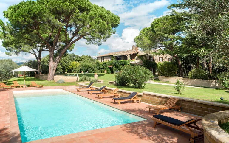 La piscina in comune misura 15 x 5 metri con profondità di 140 cm ed è disponibile dal 16 maggio al 3 ottobre. Un'area doccia all'aperto si trova nelle vicinanze della vasca. La zona patio è arredata con mobili da giardino e ospita un barbecue per cene all'aperto. L'intera proprietà recintata di 30 ettari, punteggiata di prati e alberi, offre uno spazio naturale generoso per l'esplorazione e il relax. L'accesso diretto alla spiaggia erbosa del Lago di Bolsena dista 300 metri dalla proprietà.