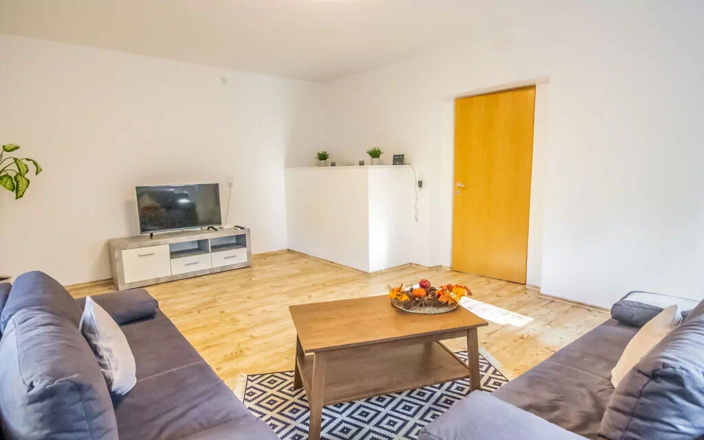 "CLB", apt. di 2 locali 85 m2, al pianterreno. Arredamento semplice e accogliente: ingresso. 1 camera con 3 letti. Soggiorno/camera con 2 divani letto e TV (satellite) (schermo piatto). (forno, lavastoviglie, 4 Piastre ad induzione, forno a microonde, congelatore, macchina del caffè elettrica) con tavolo da pranzo. Doccia/WC. Il numero di camere disponibili per l'uso nella proprietà dipende dal numero di persone per le quali è stata effettuata la prenotazione. Pertanto, se la proprietà è stata prenotata per un numero inferiore di persone rispetto alla capienza massima, alcune