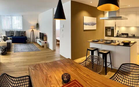 L'appartamento "SnowKaya" si trova nel cuore del caratteristico villaggio monastico di Engelberg, in Svizzera, e occupa 89 m² di spazi abitativi pensati con cura. Aperto per la prima volta nel dicembre 2019, questo elegante appartamento di 3 stanze al primo piano combina un'estetica contemporanea con finiture di alta qualità. La proprietà comprende 2 camere matrimoniali con letti boxspring di lusso, un bagno con vasca e WC, una cucina moderna a vista dotata di forno, microonde, lavastoviglie e macchina per il caffè, e uno spazio living-dining in open plan con un letto aggiuntivo e televisione. L'ubicazione centrale nel villaggio consente di accedere immediatamente alla vivace vita alpina di Engelberg.