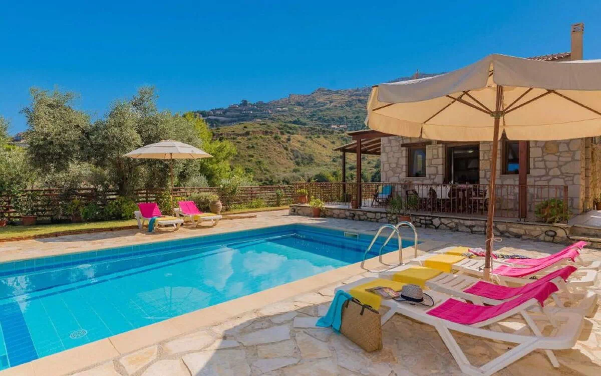 Villa "Alpha", piacevole, confortevole su 2 piani, indipendente, circondata da campi. Nella frazione Argassi, a 6.5 km dal centro di Zakynthos Town, posizione tranquilla, soleggiata, a 1.9 km dal mare, a 1.9 km dalla spiaggia. Per uso privato: bello, curato giardino con fiori e alberi, prato per sdraiarsi, piscina ad angolo (28 m2, profondità 160 cm, disponibilità stagionale: 01.Apr.-31.Ott.). Barbecue, parcheggio presso la casa. Negozio alimentare 1 km, supermercato 1 km, ristorante 1 km, bar 1 km, panetteria 1 km, cafe 1 km, spiaggia sabbiosa "Argassi" 1.9 km. Mini golf 2 km, maneggio 10.2 km. Attrazioni nelle vicinanze: Tsilivi Waterpark 13.1 km, Bochali Venetian Castle 6.9 km, Zakynthos Byzantine Museum 6.1 km, Askos Stone Park 34.2 km, National Marine Park of Zante 8.3 km. Prego notare: auto consigliata. Dotazioni per bimbi su richiesta (incluso). Il proprietario non accetta gruppi di giovani. La casa GR1890.3.1 è situata sullo stesso terreno.