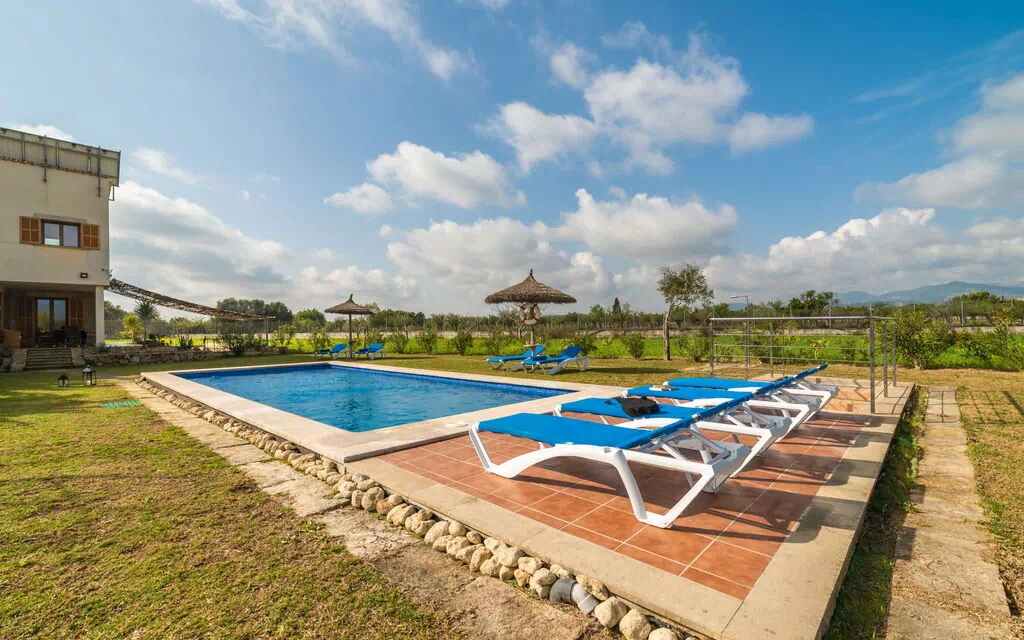 Son Bordoi è un'ampia e bellissima tenuta agricola circondata da alberi, prati e campi nella campagna vicino a Moscari, Selva, Spagna. Questa casa vacanza offre una proprietà allo stato naturale con un prato, un'area per prendere il sole, un bellissimo giardino rilassante e una piscina angolare di 4 x 10 metri con una profondità di 100 - 200 cm, disponibile stagionalmente dal 1° gennaio al 31 dicembre. La proprietà dispone di servizi come un cortile, internet WiFi e parcheggio.