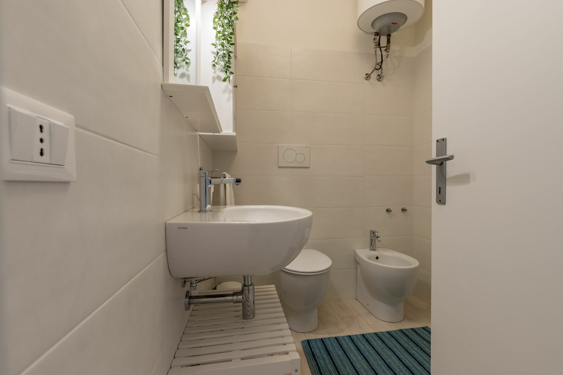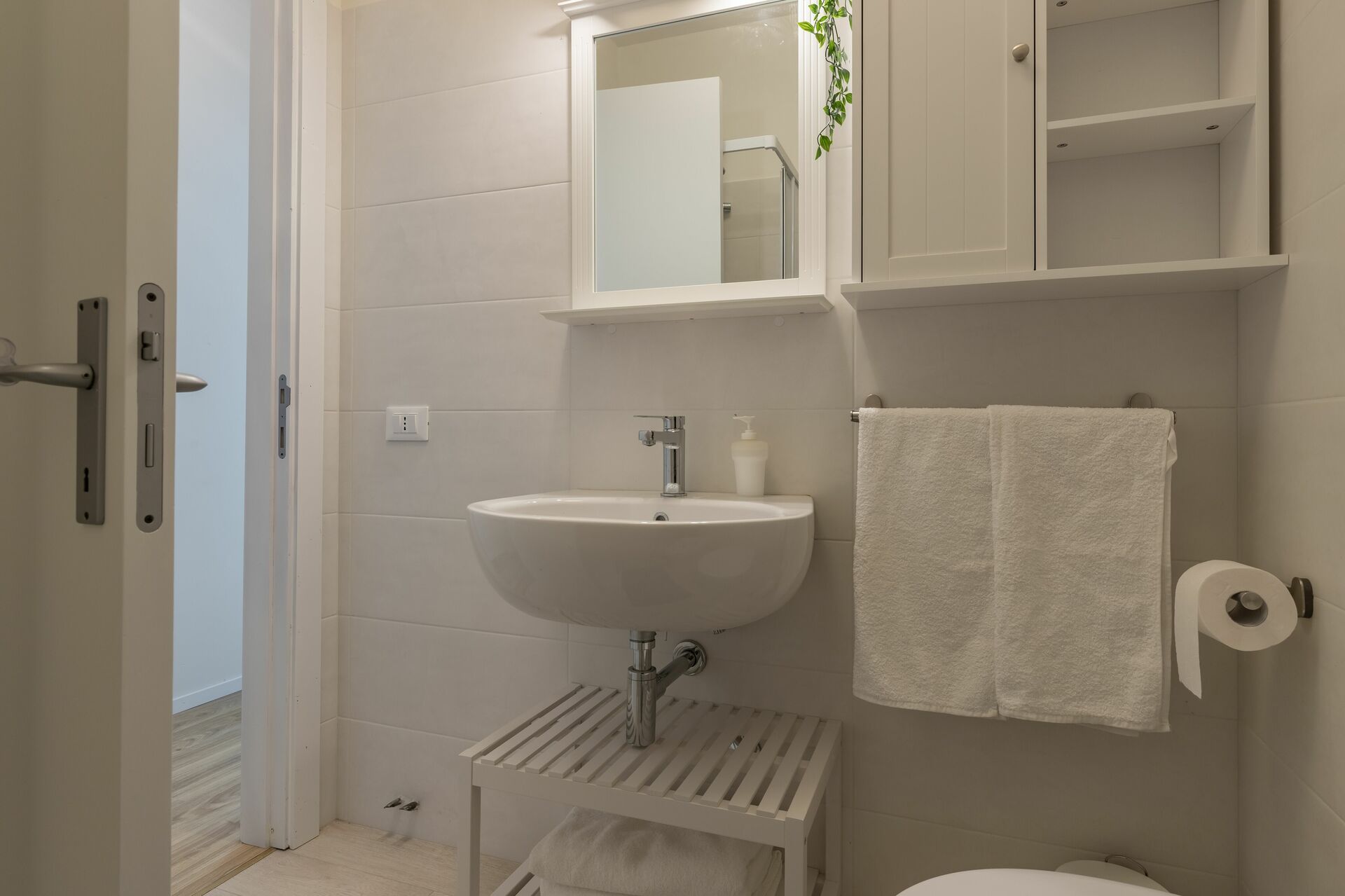 Bagno (8 m2): lavandino, wc, bidet, doccia, asciugacapelli.