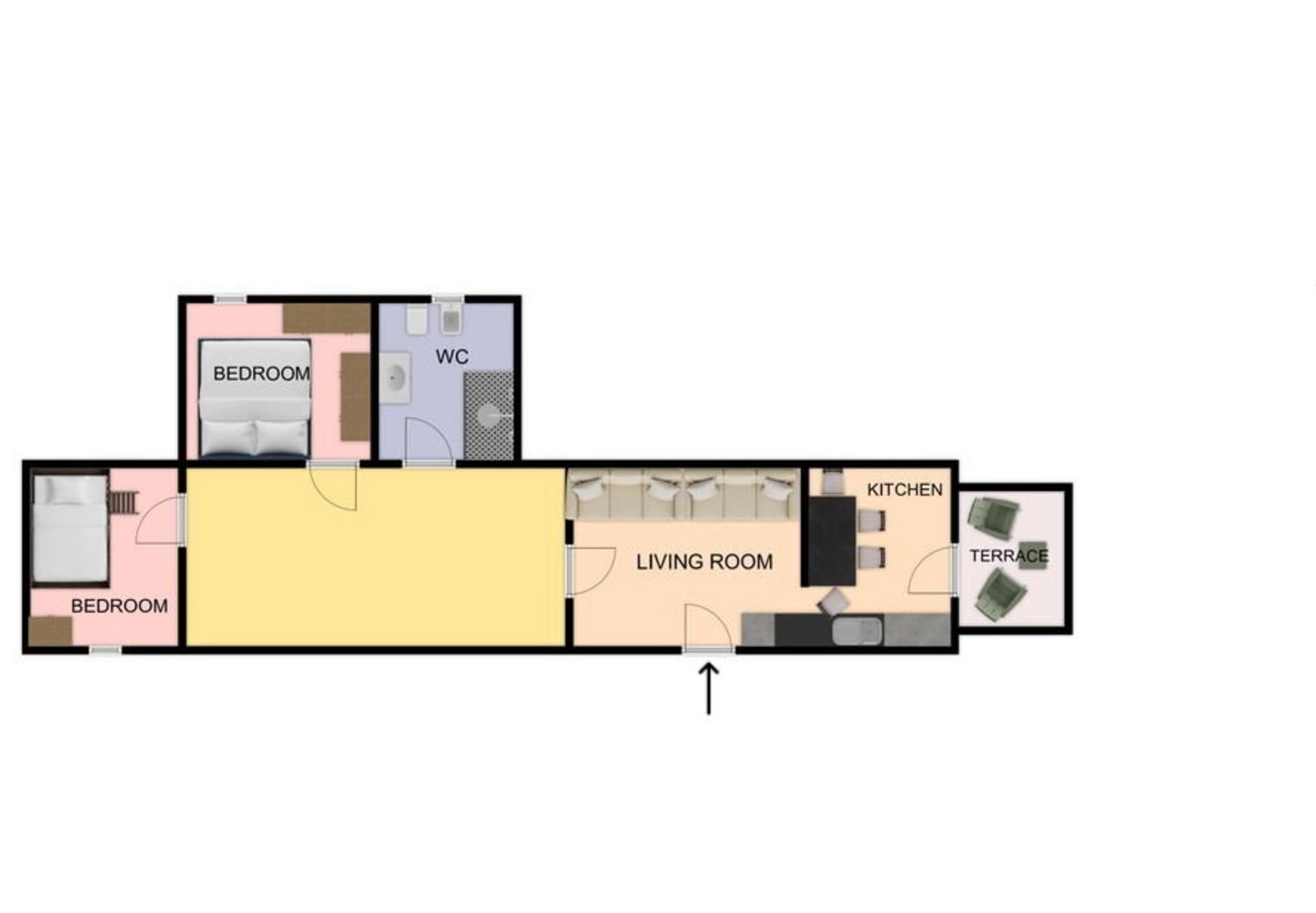 Comprende: cucina - soggiorno, 2 camere da letto, bagno.