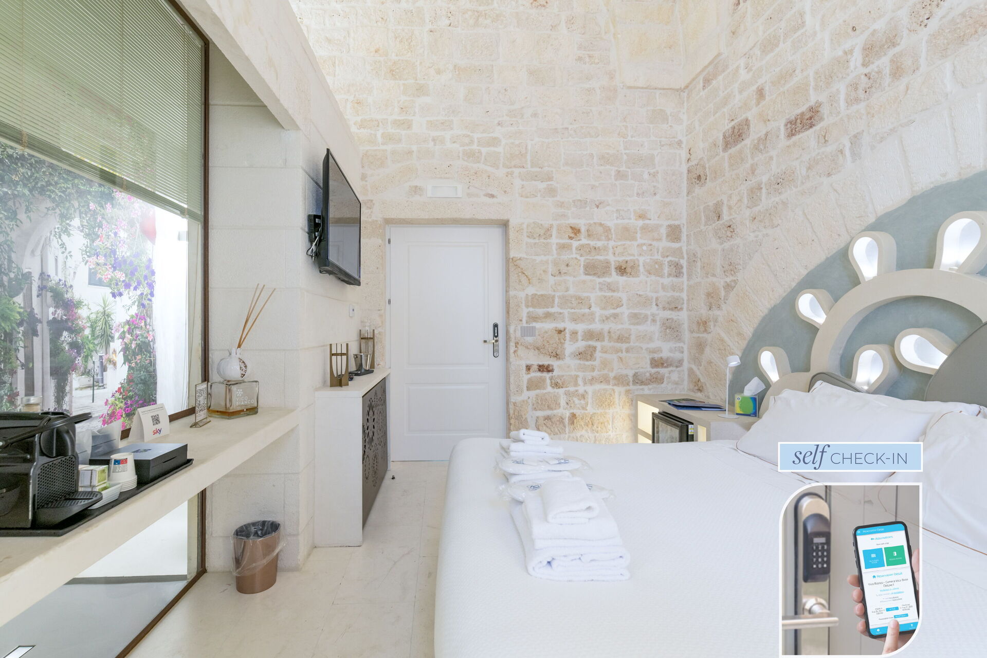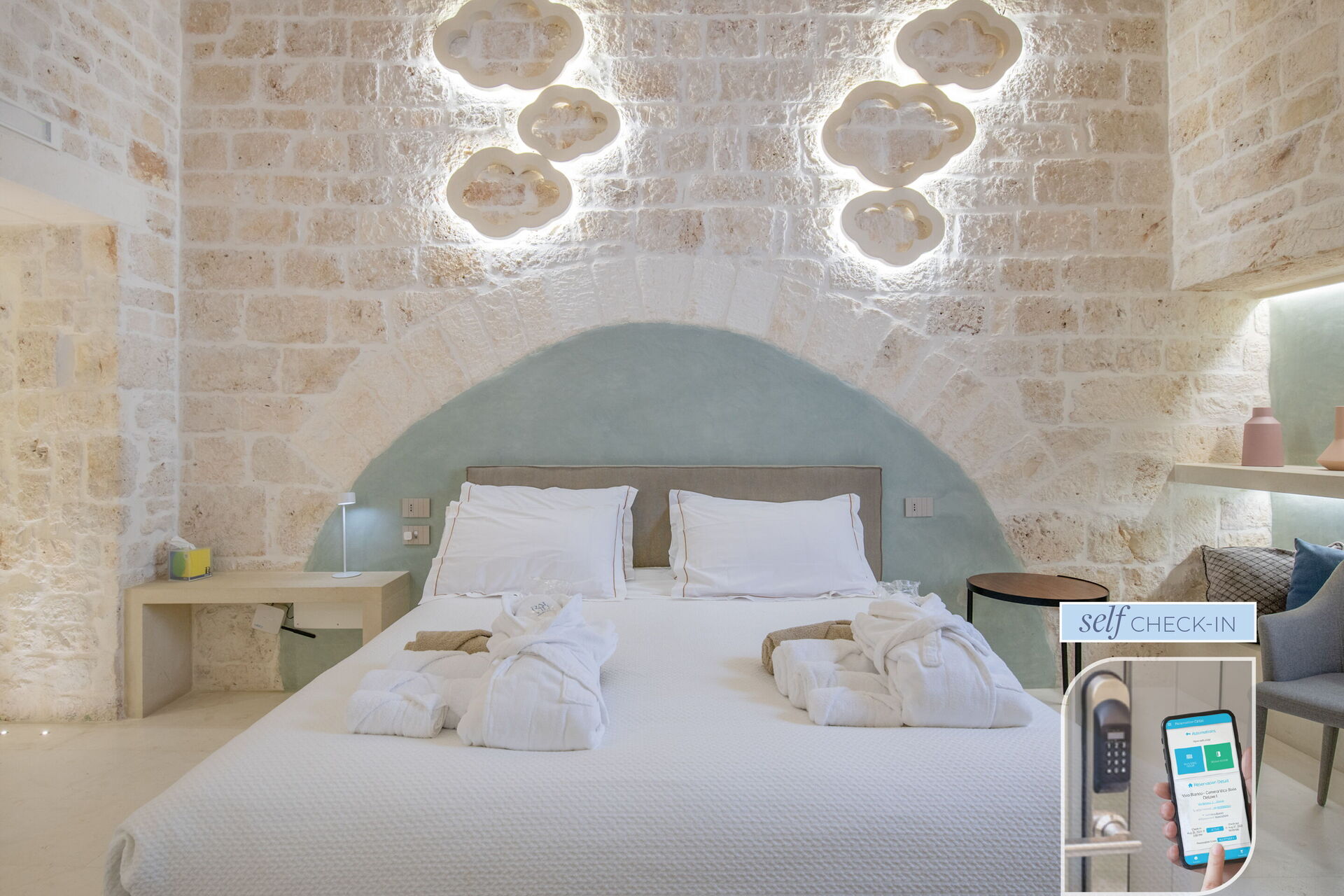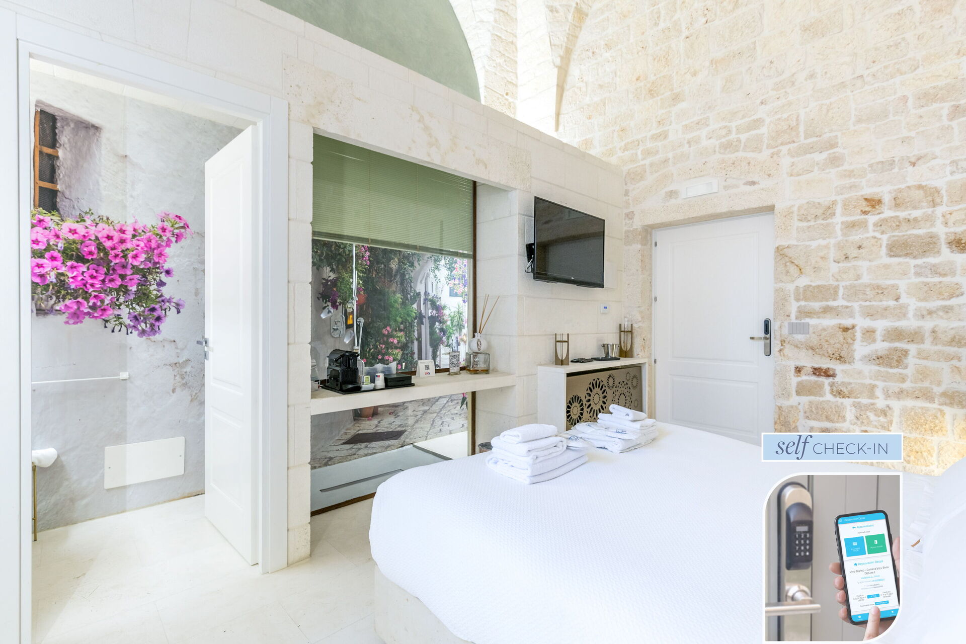 Vico Bianco, palazzo storico di Ostuni, con ampie e accoglienti camere e suites, nelle quali ogni dettaglio è orientato al comfort.