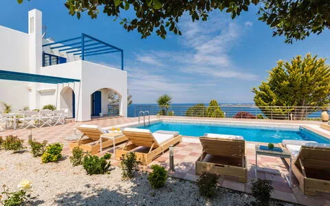 Villa "Helios", moderna, piacevole su 3 piani, indipendente. Nella frazione Kalathas, a 10 km dal centro di Chania, posizione tranquilla, soleggiata, a 2.1 km dal mare, a 2.1 km dalla spiaggia. In comune: Tennis, spazio giochi per bambini. Per uso privato: grande, bello, curato giardino con fiori e alberi, piscina ad angolo (40 m2, disponibilità stagionale: 01.Apr.-31.Ott.). Doccia esterna, parcheggio presso la casa. Negozio alimentare 2.5 km, supermercato 2.5 km, ristorante 2.5 km, bar 2.5 km, panetteria 2.5 km, cafe 2.5 km, spiaggia sabbiosa "Kalathas" 2.1 km. Maneggio 22.7 km. Attrazioni nelle vicinanze: Venizelos Graves 5.5 km, Chania Old Venetian Harbor 9.9 km, Allied Troops War Cemetery 10.1 km, Archaeological Museum of Chania 7.9 km, Maleme World War II Cemetery 35.8 km, Aqua Park Limnoupolis 25.1 km. Prego notare: auto consigliata. Dotazioni per bimbi su richiesta (incluso). Il proprietario non accetta gruppi di giovani. La casa GR6570.3.1 è situata sullo stesso terreno.