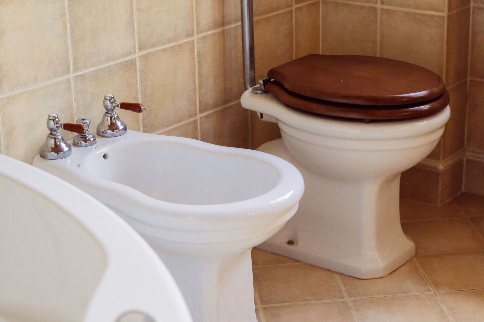 Bagno: vasca da bagno idromassaggio, lavandino, wc, bidet.