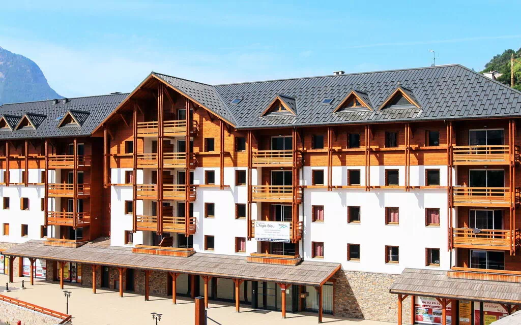La residenza "L'Aigle Bleu" è un residence vacanza di 5 piani situato a un'altitudine di 1.200 metri sul livello del mare nel cuore di Briancon, Francia. Vanta 59 appartamenti all'interno del complesso e offre una gamma di servizi, tra cui un cortile, accesso internet WiFi, parcheggio (a pagamento) e un'opzione di piano di rateizzazione per il pagamento. La residenza è comodamente situata a soli 200 metri dall'area sciistica, consentendo un facile accesso alle piste.