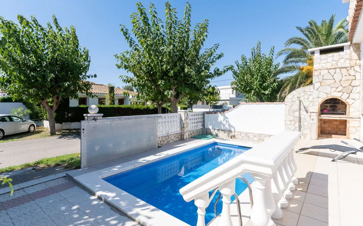 Flamenco è una bellissima, accogliente casa ristrutturata situata nel quartiere di Carmençó, a soli 200 metri dal centro di Empuriabrava, Spagna. Gode di una posizione soleggiata in un'area residenziale di ville, offrendo un'eccellente ubicazione sia centrale che tranquilla, con un ambiente a traffico rallentato. La proprietà vanta una piscina privata angolare (6 x 3 m, profondità 150 - 160 cm) disponibile stagionalmente dal 1° aprile al 30 settembre, un cortile con mobili da giardino, internet Wi-Fi e un campo da tennis. Goditi la comodità di avere una lavatrice di passaggio all'interno della casa e un parcheggio pubblico sulla strada.