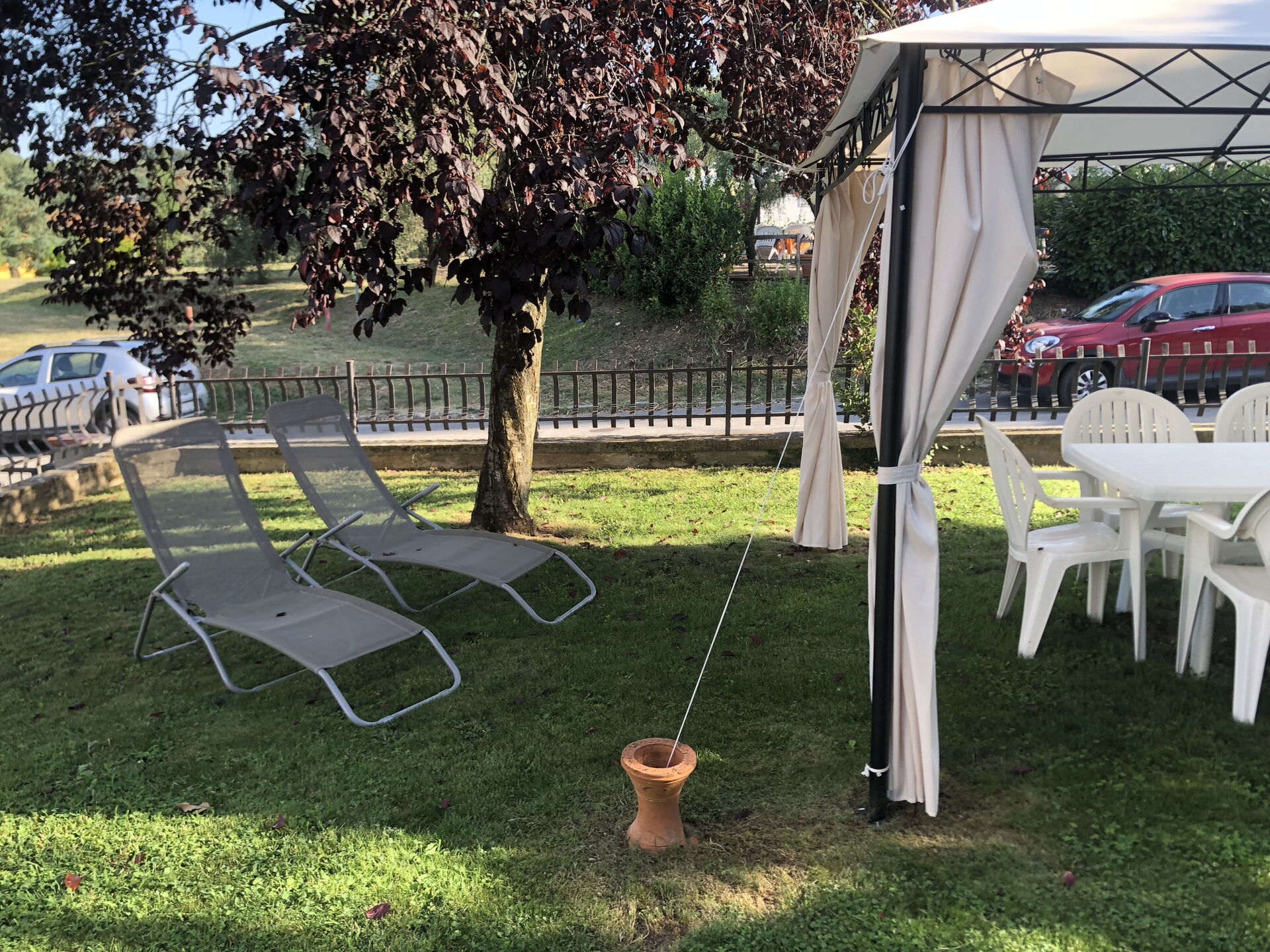 Il giardino è completamente recintato con ringhiera.