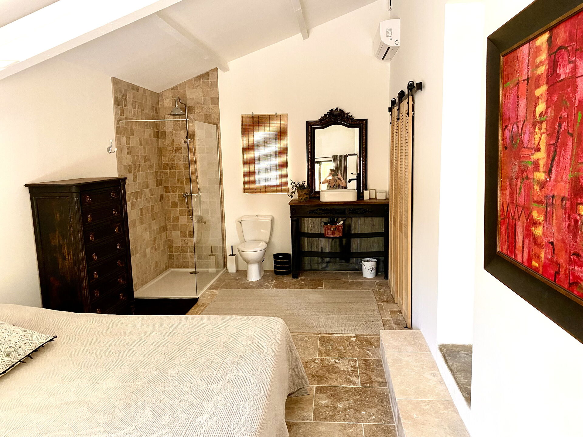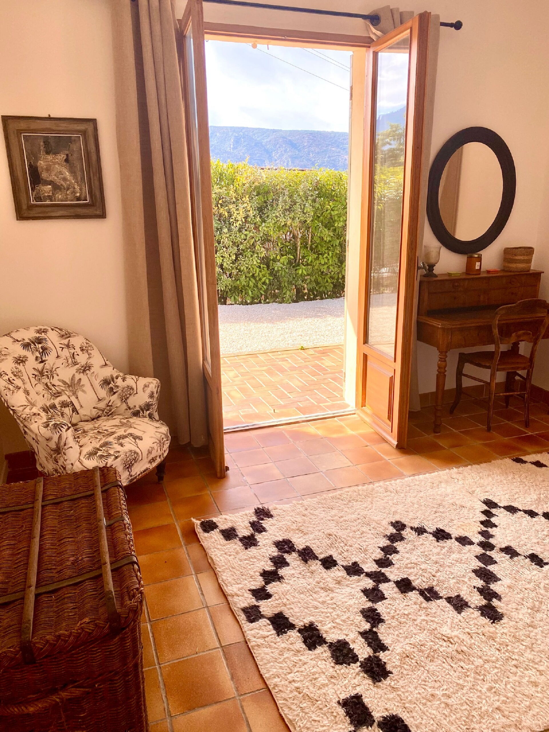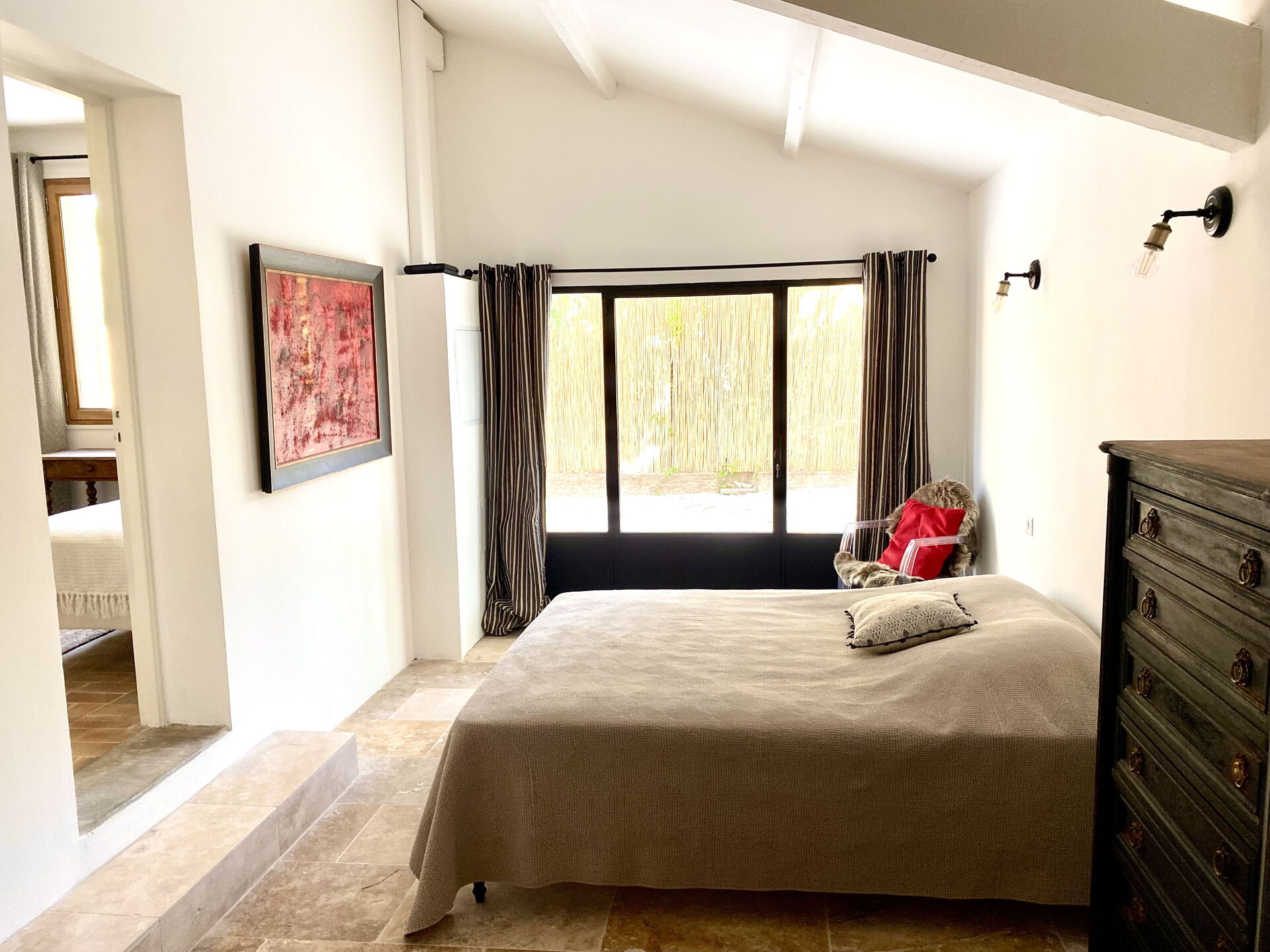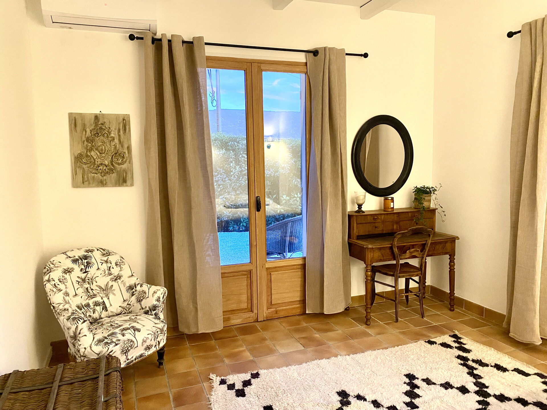 Camera da letto 3 (25 m2): letto matrimoniale (larghezza: 1.6m, lunghezza: 2m), internet WIFI, aria condizionata, scrivania, uscita sulla terrazza.