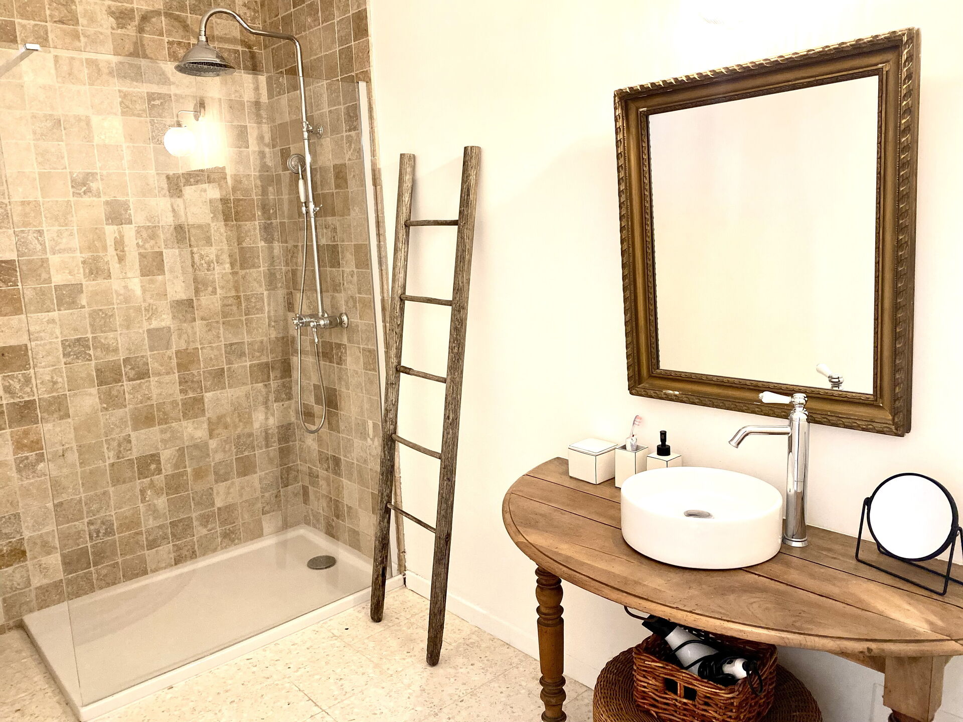 Bagno 1: lavandino, doccia, asciugacapelli.