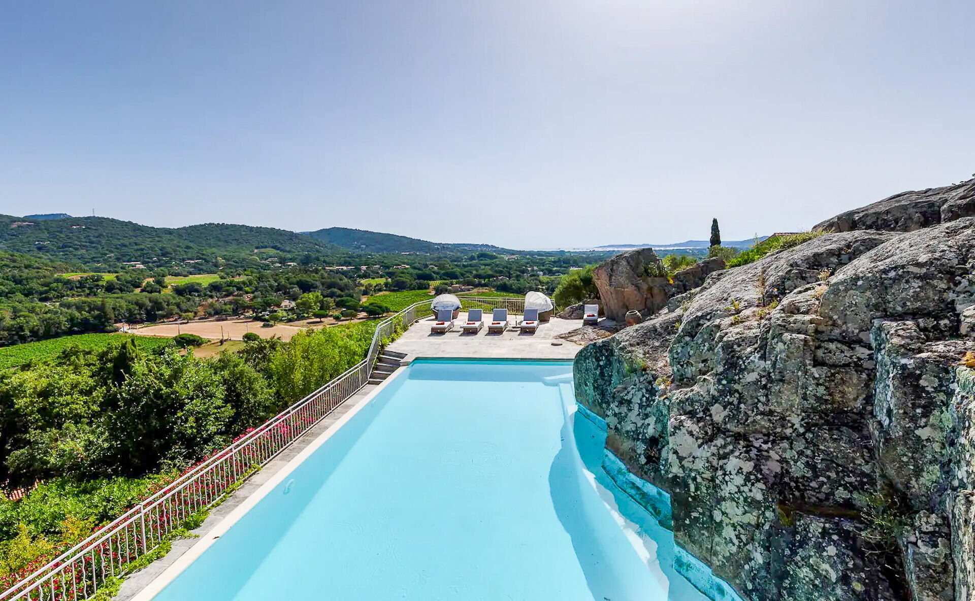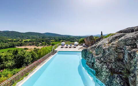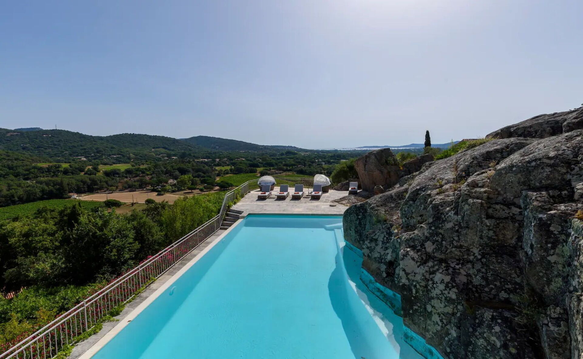 La struttura dispone di un ampia piscina posizionata su un promontorio , da un lato è circondata da un massiccio roccioso e dall'altro sovrasta la splendida vallata che porta al Golfo di Saint Tropez. La piscina dispone di lettini con teli piscina inclusi, posizionati in maniera ideale per sorseggiare un cocktail , ammirando l'incantevole paesaggio che regala la campagna francese.