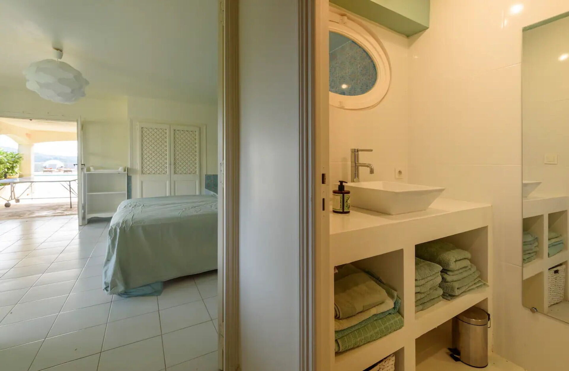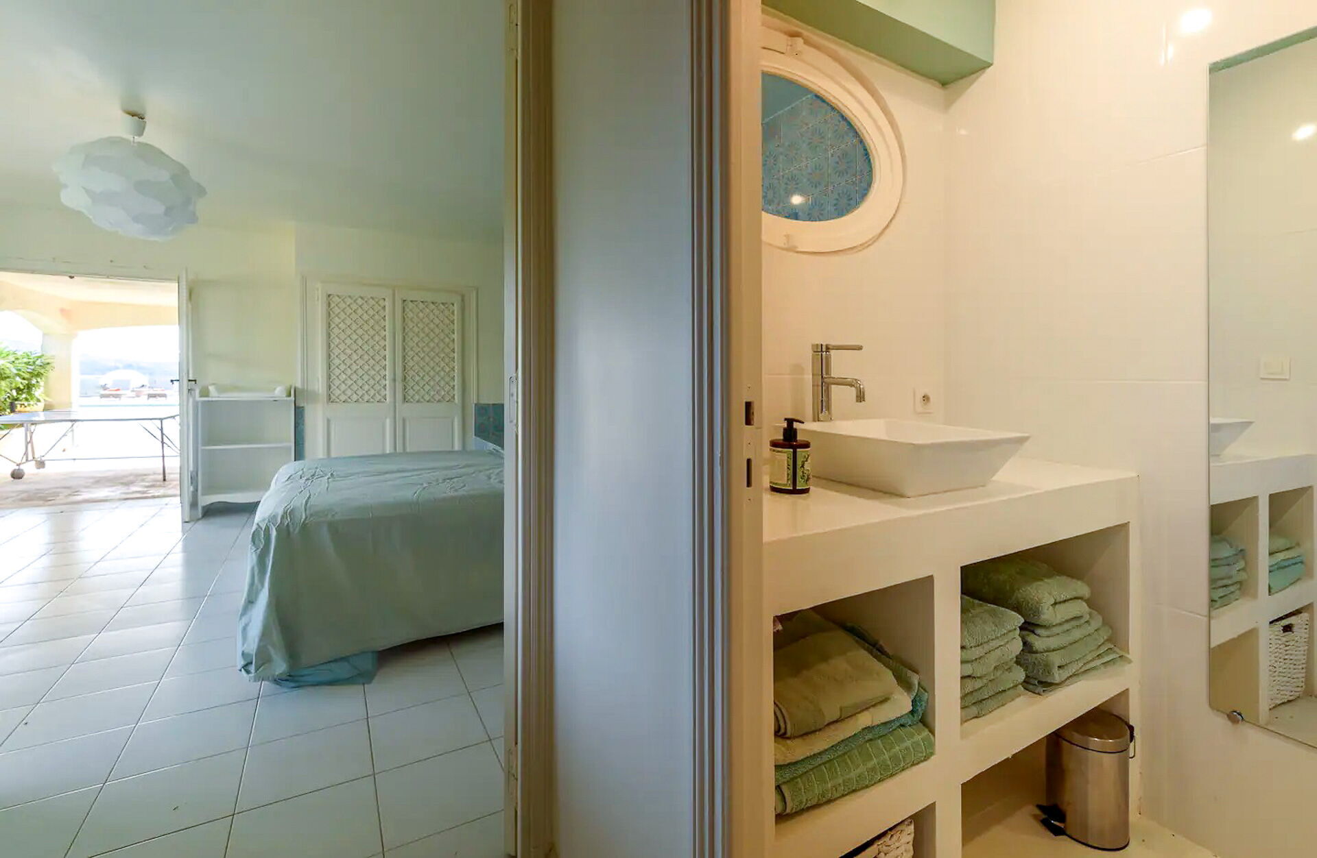 La villa si presenta su due livelli, adagiata su un promontorio, dispone di 6 spaziose e confortevoli camere da letto ognuna delle quali con bagni ensuite, finemente tinteggiate con tonalità beige pastello.