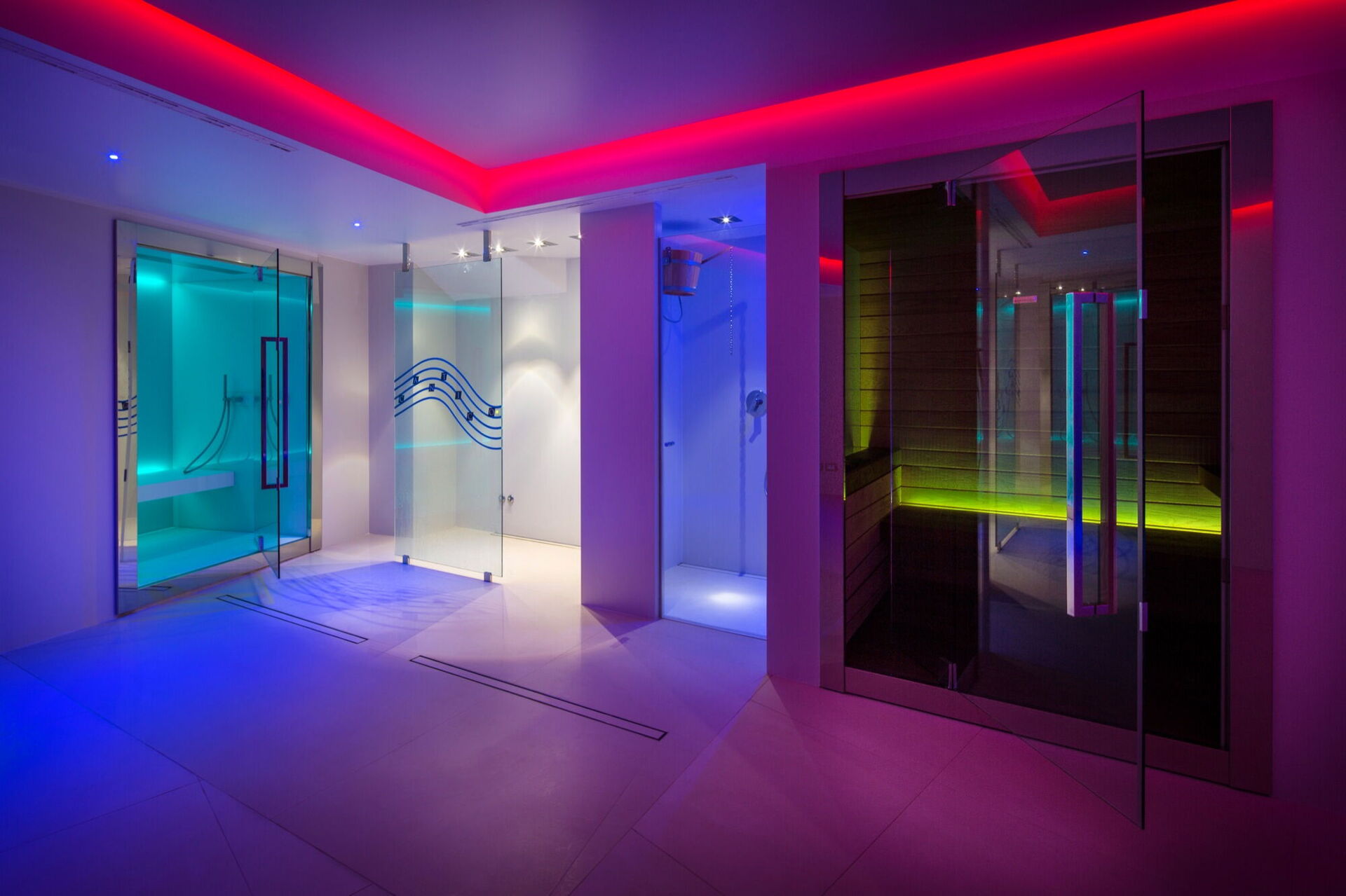 SPA (900 m2): due vasche idromassaggio interna, sauna, attrezzatura da palestra, 15 sdraio, aria condizionata, stereo hifi, bagno turco.