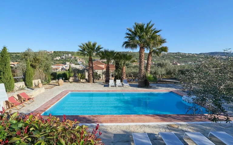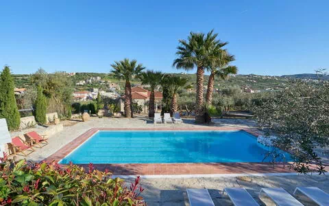 "The Olive Grove Cottage", villa 5 locali 150 m2 su 2 piani. Spazioso e luminoso, arredamento confortevole e gradevole: soggiorno grande, aperto con TV (schermo piatto). Uscita sulla terrazza, sulla piscina. 1 camera matrimoniale con 1 letto doppio. Uscita sulla terrazza. 1 camera matrimoniale aperta con 1 letto doppio e TV (schermo piatto). Uscita sul giardino, sulla piscina. Grande cucina aperta (forno, 4 piastre cottura in vetroceramica, tostapane, bollitore elettrico, forno a microonde, macchina da caffè elettrica) con tavolo da pranzo. 2 doccia/WC. Riscaldamento, climatizzazione. Piano superiore: mezzanino aperta con 1 letto doppio. Mezzanino aperta con 1 letto doppio. Climatizzazione. 2 grandi terrazze in parte coperta. Barbecue. Bella vista sulle montagne e sul paesaggio. A disposizione: lavatrice, ferro da stiro, asciugacapelli. Internet (wifi, gratis). Prego notare: adatto alle famiglie una camera doppia è esterna all'abitazione. Casa per non fumatori. 00001895477