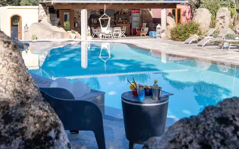 La proprietà vanta un grande giardino con prato e alberi, perfetto per godersi il bel tempo sardo. Il punto forte è la piscina rotonda di 15 x 7 metri, disponibile per l'uso stagionale dal 1° aprile al 31 ottobre. Gli ospiti possono anche usufruire di un'area doccia/WC nella zona piscina, un patio con arredi da giardino e un'area barbecue.