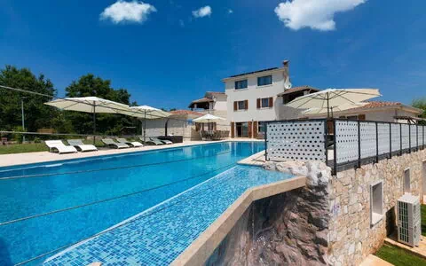 La moderna e bella villa "San Lorenzo" offre un'esperienza di vacanza di lusso con 4 piani e una posizione privilegiata a Nova Vas, a soli 3 km da Brtonigla e 8 km da Novigrad, in Croazia. Situata in una posizione soleggiata, la proprietà privata vanta 2'500 m2 di terreno recintato, un rigoglioso giardino con prato, un giardino di piante selvatiche e uno stagno. Goditi la splendida piscina, la piscina angolare interna (4 x 5 m, profondità 100 cm) e una gamma di servizi tra cui doccia esterna, idromassaggio, ping-pong, terrazza, mobili da giardino e un'area barbecue.
