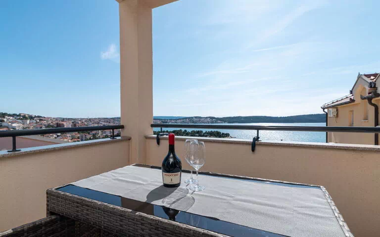 Il palazzo degli appartamenti gode di una posizione soleggiata ed elevata, fornendo abbondante luce naturale e piacevoli viste. Sebbene sia necessario attraversare la strada, la proprietà è comodamente situata a soli 400 m dal mare e dalla spiaggia, permettendo un facile accesso alla costa. La spiaggia presenta una riva di ciottoli e rocce, perfetta per godersi il litorale croato.