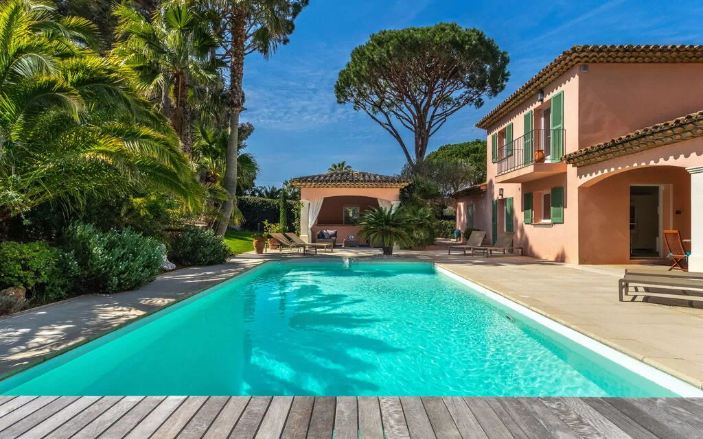 Concediti una vacanza di lusso nell'incantevole villa "Indigo" situata a Port Grimaud, in Francia. Questa villa su due piani vanta un curato giardino recintato di 1.330 m2, completo di rigoglioso prato, una piscina riscaldata (10 x 5 m, profondità 100 - 190 cm, disponibile stagionalmente dal 1° aprile al 31 ottobre) con copertura a tapparella e un'area piscina attrezzata con frigorifero e bocce. Goditi la comodità di Internet WiFi, ampio parcheggio e facile accesso a negozi, alimentari, supermercati, ristoranti e la spiaggia sabbiosa "Les Prairies de la mer" a breve distanza.