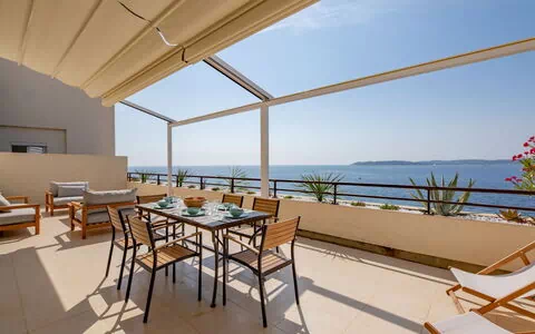 La maisonette dispone di una grande terrazza di 50 metri quadrati con vista panoramica sul mare, esposta a sud e dotata di mobili da terrazza. Altri servizi includono lavatrice, ferro da stiro, asciugacapelli e internet (WiFi, extra). È inoltre disponibile un posto auto riservato situato a 750 metri di distanza, adatto solo per un'auto piccola.