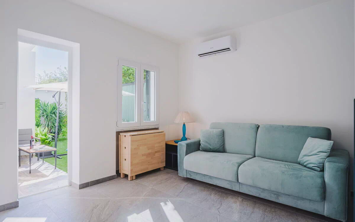 Soggiornerai in un accogliente appartamento di 30 metri quadrati, situato al piano terra. Questa unità compatta offre una comoda e arredata con gusto zona living/notte con un divano letto matrimoniale e aria condizionata.