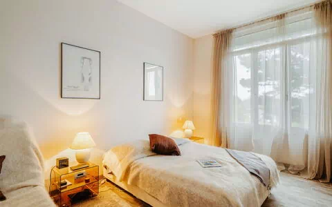 La proprietà è un appartamento di 3 stanze con un'area totale di 100 metri quadrati, con vista a ovest. Dispone di un soggiorno/sala da pranzo con TV a schermo piatto, una camera con un letto matrimoniale francese (140 cm di larghezza e 190 cm di lunghezza) e un'altra camera con due letti (90 cm di larghezza e 200 cm di lunghezza). La cucina aperta è attrezzata con forno, lavastoviglie, 4 piastre a induzione, tostapane, bollitore, microonde e macchina elettrica per il caffè. È presente anche una doccia e un bagno separato.