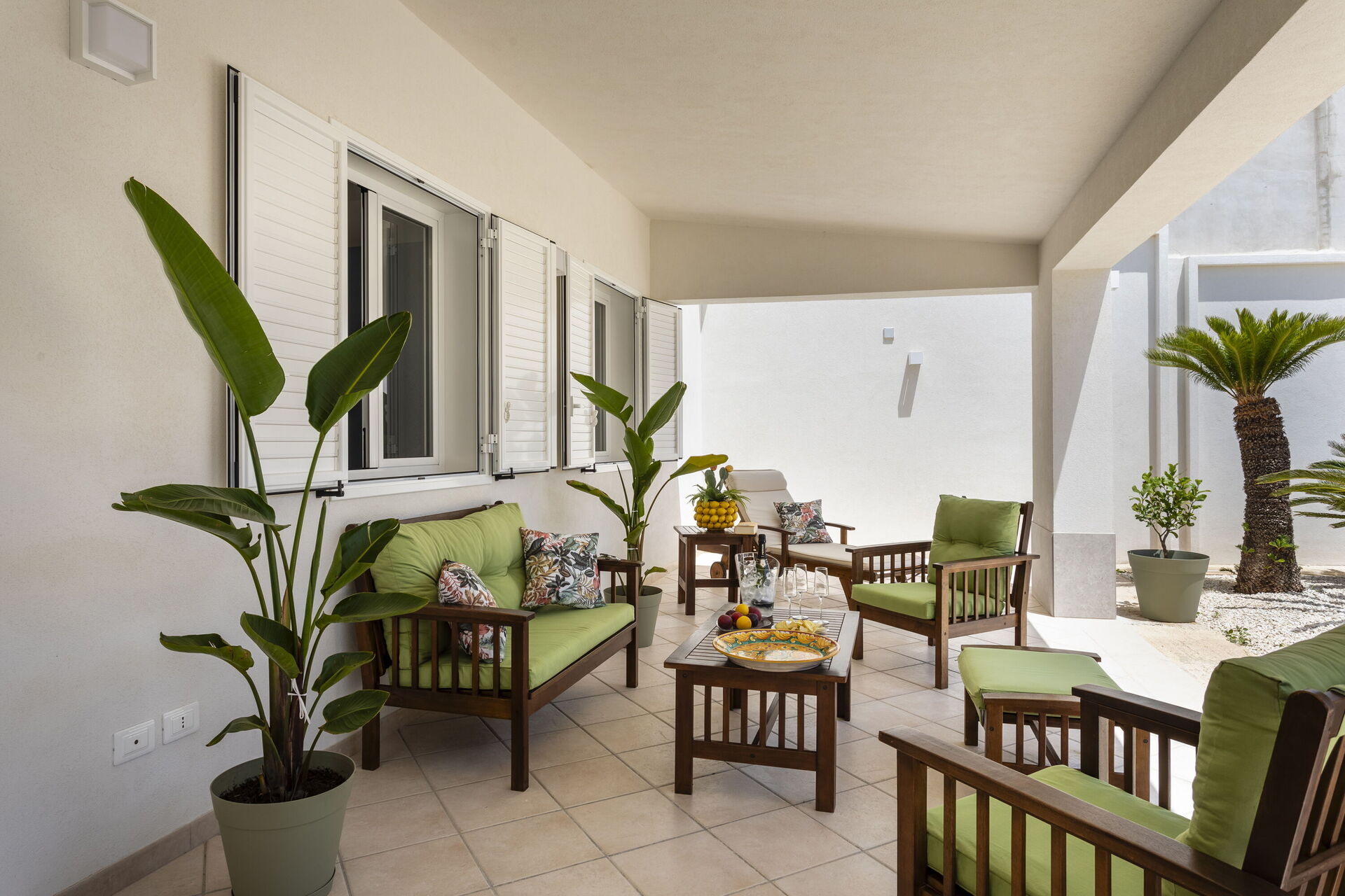 All'esterno, la casa vacanze è circondata da due verande, una con cucina in muratura, barbecue a gas e un bagno con lavanderia, l'altra perfetta per i momenti di relax.