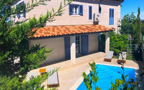 La casa semi-indipendente "Mala" è una casa vacanza a due piani situata a 1 km dal centro di Murter, in Croazia. Gode di una posizione soleggiata, di una proprietà privata di 330 m2 e di una piscina stagionale (21 m2, profondità 150 cm) con scala interna, disponibile dal 1° giugno al 30 settembre. La proprietà dispone anche di una doccia esterna, una terrazza (22 m2), mobili da giardino e un'area barbecue. Inoltre, offre accesso a internet, una lavatrice e parcheggio per due auto all'interno della proprietà.