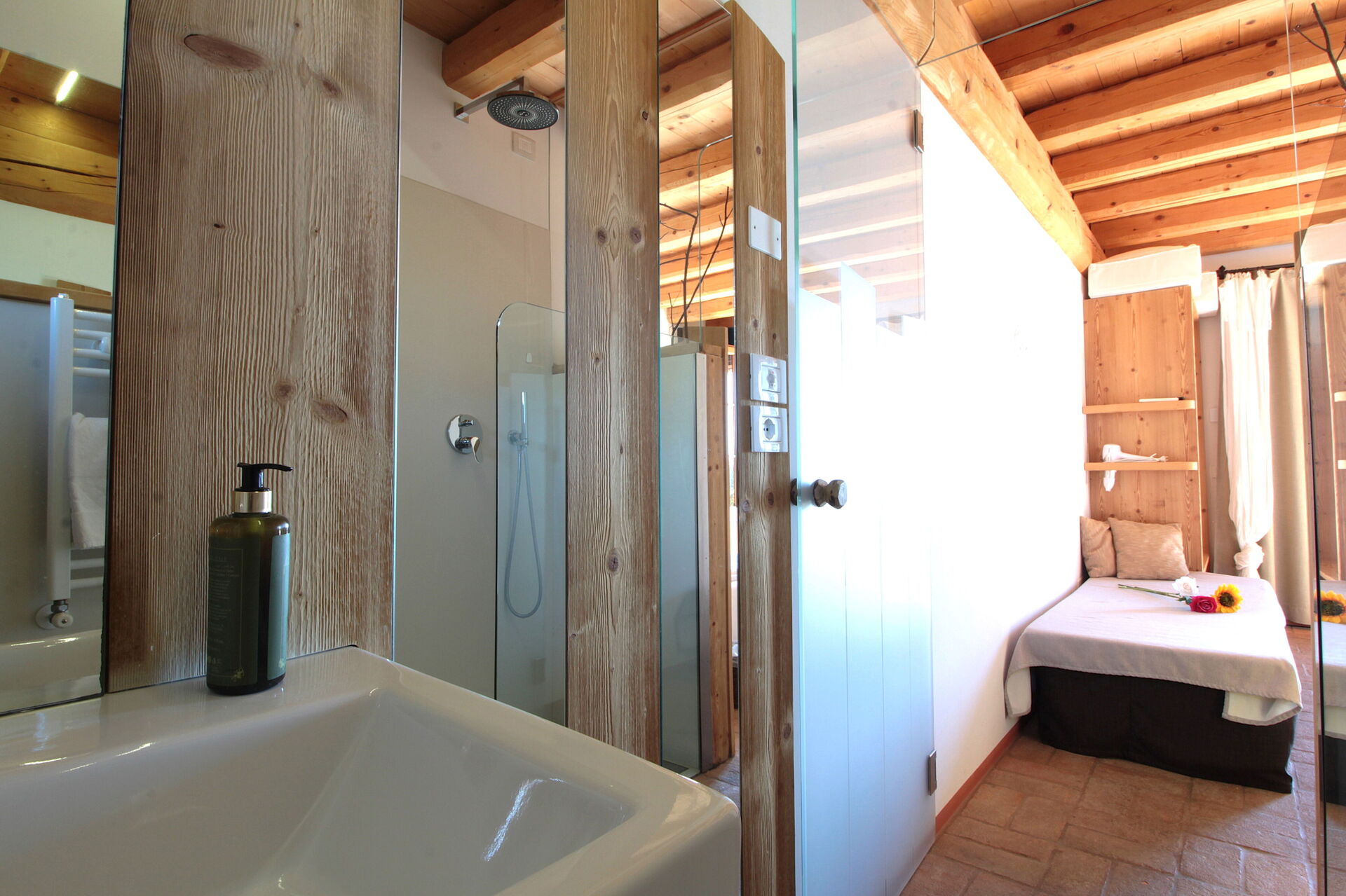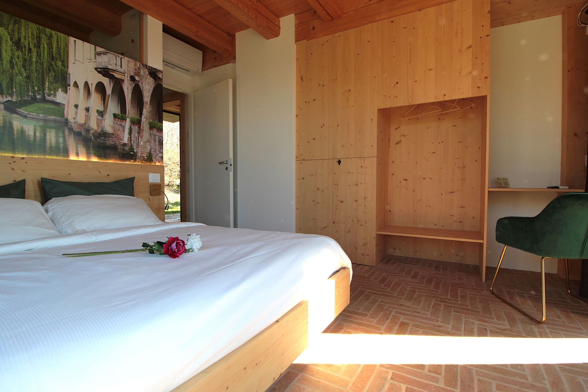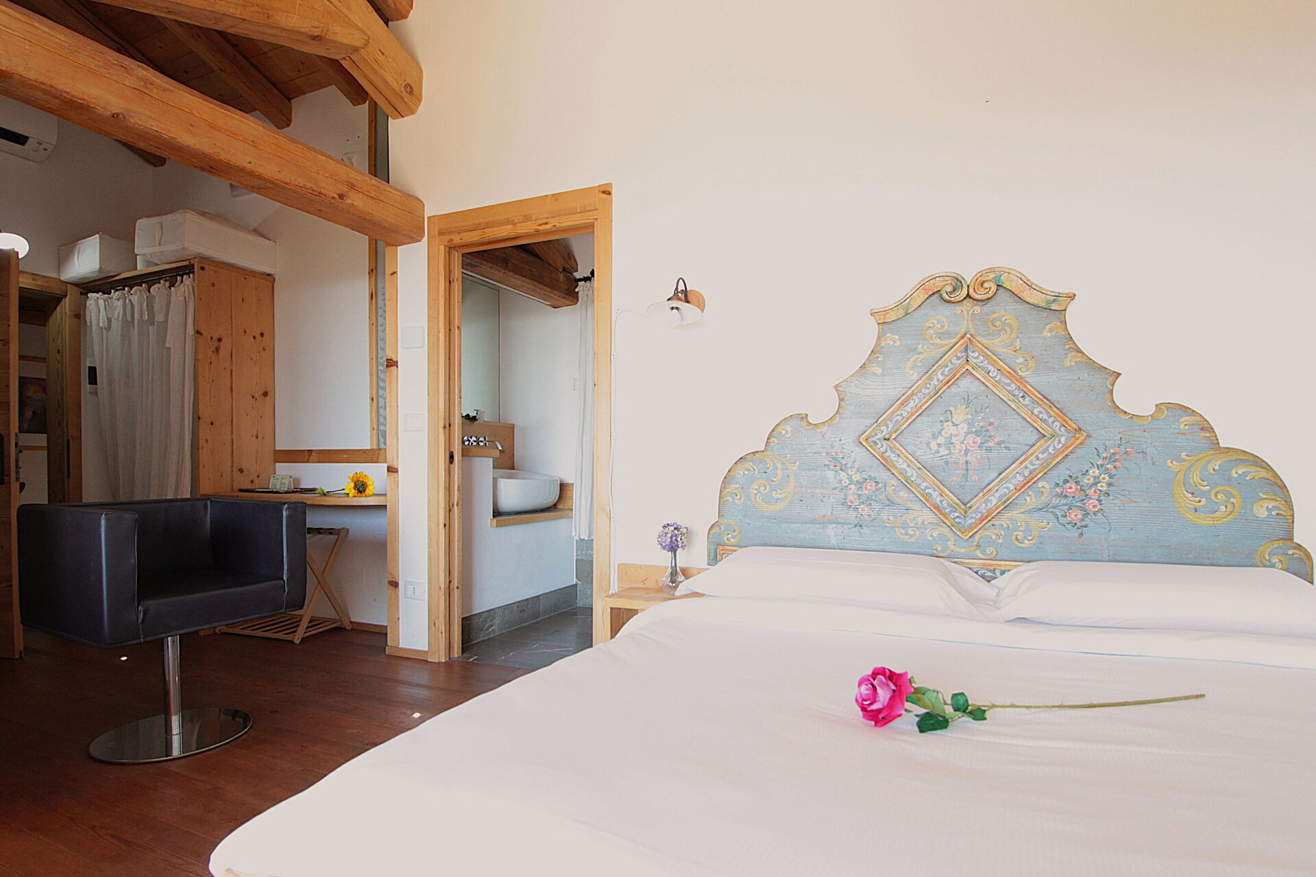 Camera da letto con bagno 1: letto matrimoniale, internet WIFI, aria condizionata, televisione, lavandino, wc, bidet, doccia.