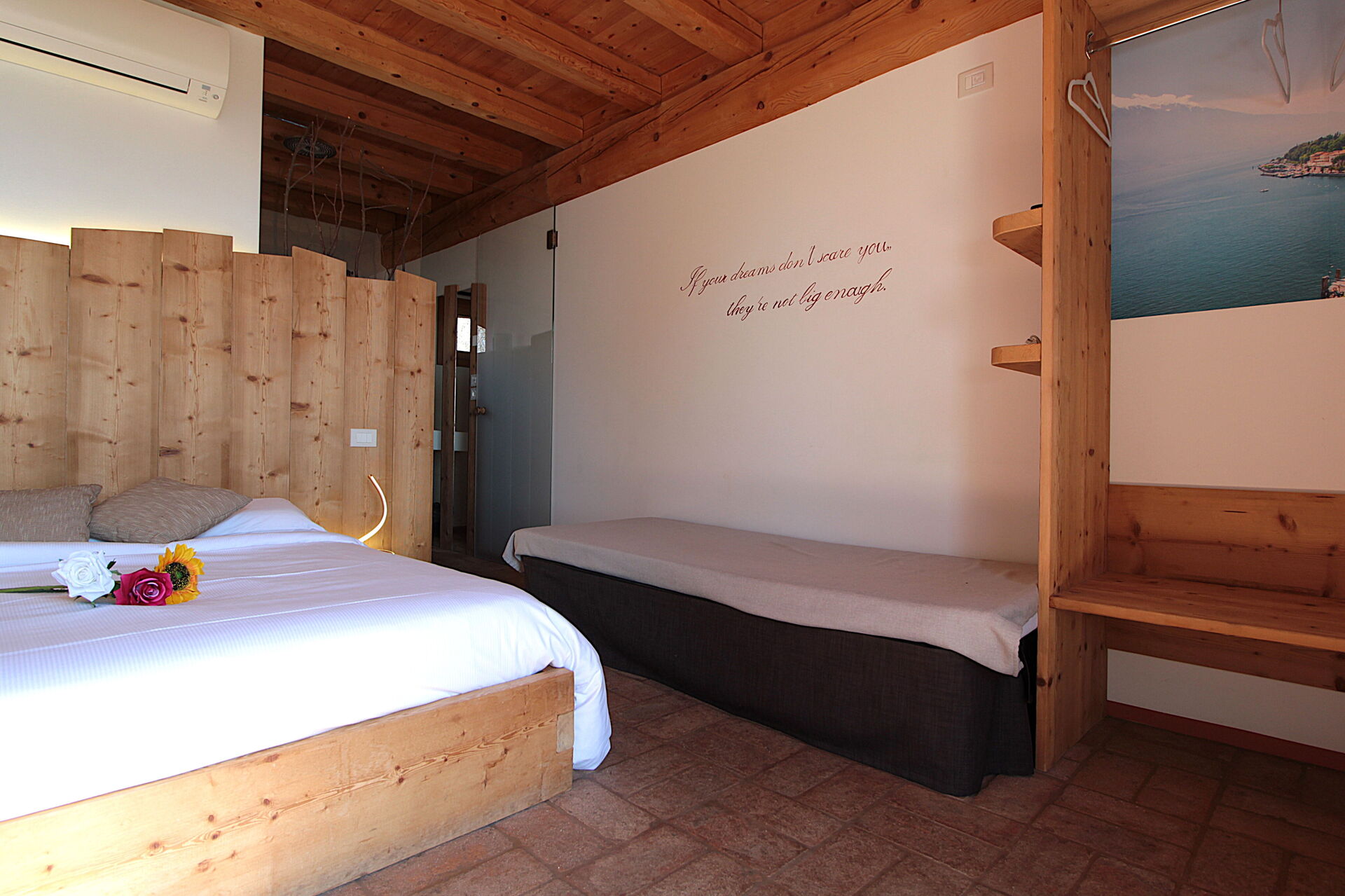 Camera da letto con bagno 4: letto matrimoniale, letto singolo, internet WIFI, aria condizionata, televisione, lavandino, wc, bidet, doccia.