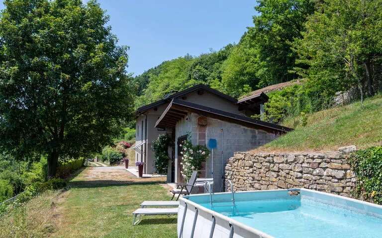 Lo spazio esterno è un punto di forza di questa proprietà, con una piscina fuori terra stagionale (4 x 2 m, profondità 120 cm) disponibile dal 1° giugno al 1° settembre, con manutenzione della piscina fornita dal proprietario/giardiniere. Inoltre, la proprietà vanta un'ampia area naturale di 4'000 m2 con un prato, perfetta per il relax e le attività all'aperto.