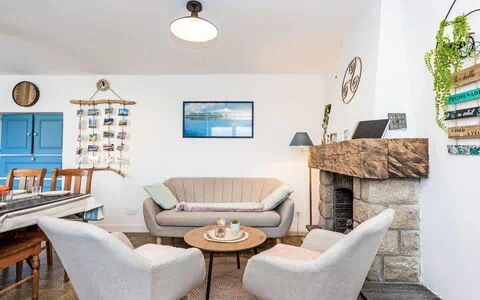 Durante le vacanze, soggiornerai in una confortevole e arredata con gusto casa di 4 stanze che si estende su 65 metri quadrati su due livelli. Il grande soggiorno/sala da pranzo presenta un camino a vista (solo per scopi decorativi) e una TV a schermo piatto. Da questa stanza puoi accedere direttamente alla terrazza. La cucina open space è ben attrezzata con un forno, una lavastoviglie, tre piastre a induzione, un tostapane, un bollitore, un forno a microonde, un congelatore e una macchina elettrica per il caffè con capsule Dolce Gusto fornite. La cucina ha anche un'uscita separata che conduce alla terrazza. A questo livello, c'è una stanza doccia, un bagno separato e un doppio lavandino. La casa è dotata di riscaldamento elettrico.