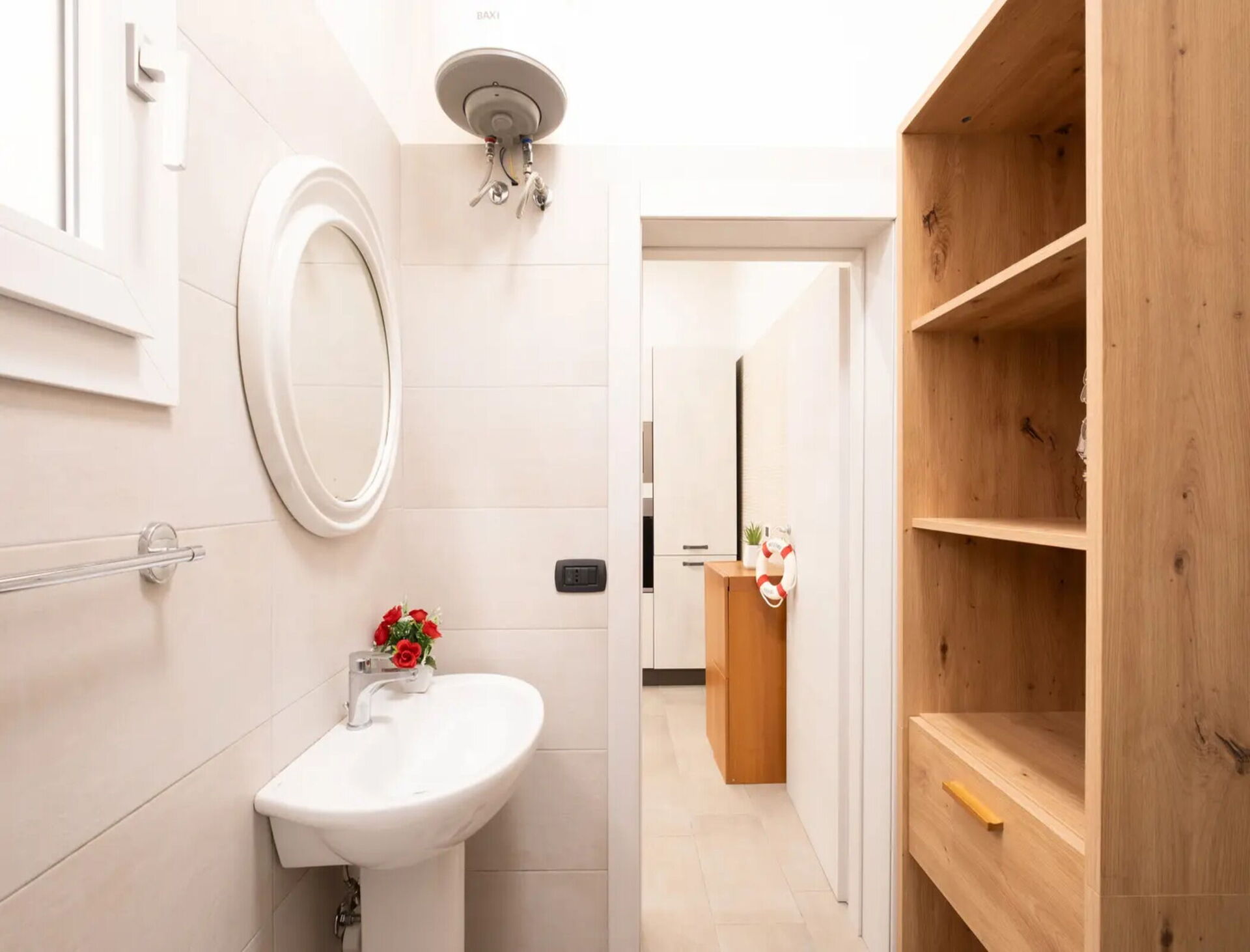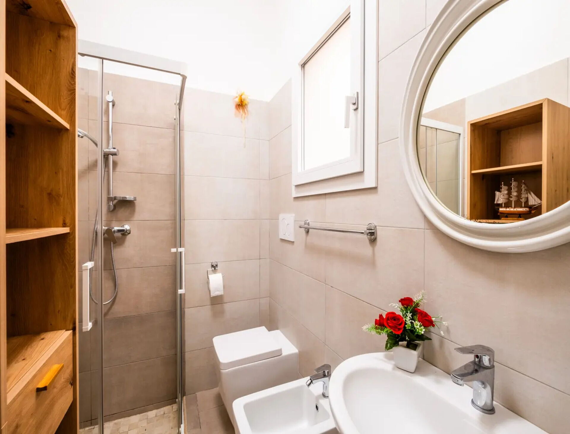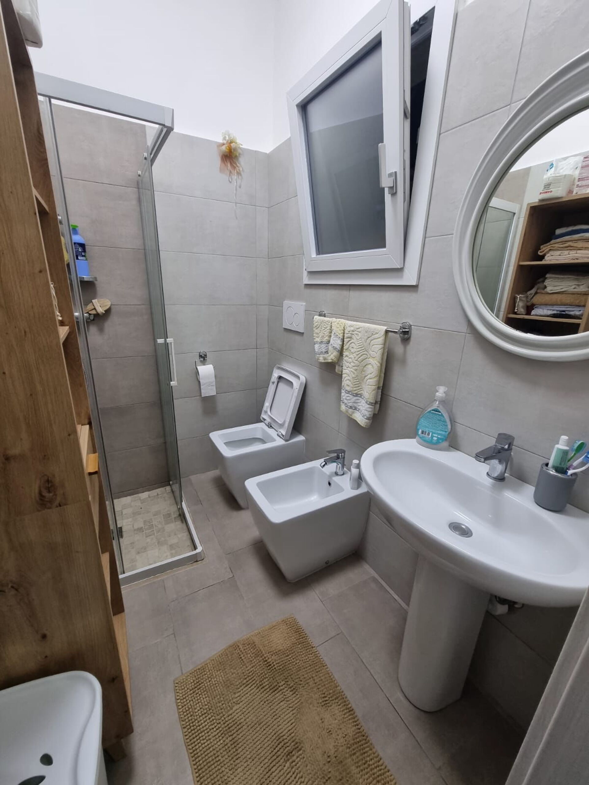 Bagno: lavandino, bidet, doccia, asciugacapelli.