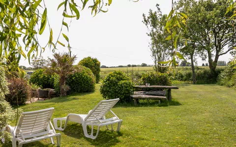 La proprietà vanta un ampio giardino ben curato di 1.800 metri quadrati, completo di prato e un'area dedicata alla natura. Questo spazio esterno privato offre un ambiente sereno e tranquillo in cui gli ospiti possono rilassarsi.