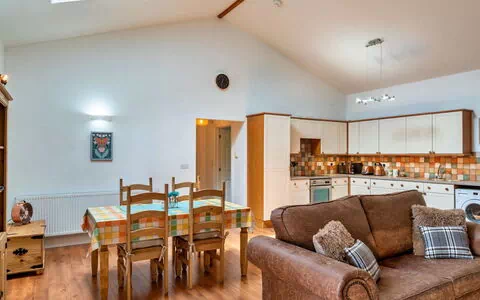 Questa casa di 3 stanze chiamata "Sweetpea Barn" ha un'area abitativa di 90 metri quadrati e può ospitare comodamente fino a 4 adulti. Presenta un accogliente soggiorno con un camino a focolare aperto, creando un'atmosfera calda e accogliente per le vostre vacanze. I locali per dormire consistono in una camera con due letti e un'altra camera con un letto singolo francese, offrendo ampio spazio per il vostro gruppo.