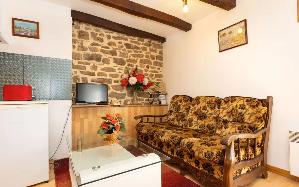La proprietà è un appartamento di 3 stanze con un'area totale di 55 metri quadrati, situato al primo piano. Presenta uno stile d'arredamento pratico e rustico. Il soggiorno/sala da pranzo è dotato di un televisore a schermo piatto. C'è una camera con un letto francese di 140 cm di larghezza e 190 cm di lunghezza, e un'altra camera con due letti, ciascuno di 90 cm di larghezza e 190 cm di lunghezza.