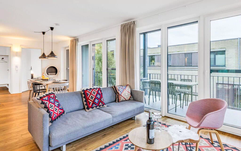 La proprietà vacanze "Seeidyll" offre un appartamento di 3 locali progettato con cura di 80 m2, situato al 1° piano. Troverete arredi di buon gusto e accoglienti in tutto lo spazio. Il soggiorno/camera da letto dispone di 1 divano letto matrimoniale e TV satellitare con schermo piatto, con uscita diretta sul balcone. L'appartamento include 2 stanze aggiuntive, con ogni stanza contenente 1 letto matrimoniale largo 180 cm e lungo 200 cm. L'angolo cottura è attrezzato con forno, lavastoviglie, 4 piastre in vetroceramica, tostapane, bollitore, microonde e macchina da caffè elettrica. L'alloggio fornisce sia un bagno/WC che una doccia/WC separati per la vostra comodità. Avrete accesso a un balcone arredato con mobili da balcone.