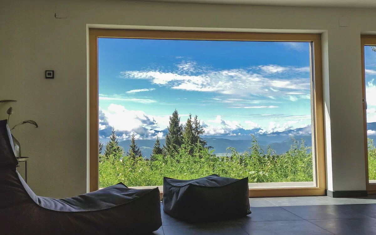 The house is quietly situated at 1140 metres above sea level in a small hamlet with 1 small farm and 5 other houses on a cul-de-sac. The hiking trail starts at the house. The nearest bathing lake is 2.5 km away. Ski 3 km. In 25 minutes you are in Klagenfurt. Nearest via ferrata approx. 25 minutes by car.It was furnished in a minimalist style so that nothing distracts from the marvellous mountain scenery and peace and relaxation set in. Fantastic view. Large wellness area with panoramic window and sauna. Outdoor solar shower, barbecue area with fire bowl. Plenty of seating areas to sit and relax. Directly on the hiking trail. E-charging station for cars according to consumption and much moreLarge garden for private use, the property is completely fenced in with a wooden fence. Outdoor shower, various seating and sunbathing areas to enjoy.Fantastic views as far as the Karawanken and the Julian Alps. The nature up here is still very unspoilt, beautiful meadows and healthy forests. The hiking trail passes right by the house.Swimming lake St. Urban 2 km and hiking on the doorstep. Small ski area in 1.5 km and large ski area about 22 km away. Very good mild air and water.
