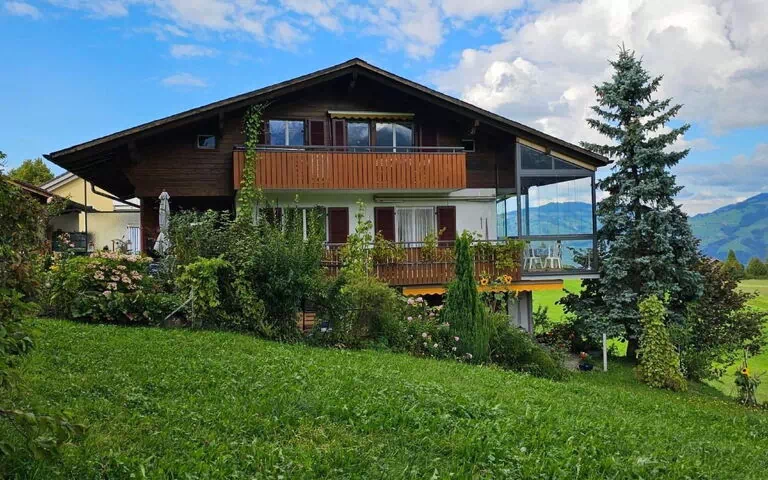 Sunny, quiet, cosy and well-kept flat in the countryside. New open kitchen (Dec. 2022), large fridge, dishwasher, oven, ceramic hob. The living room is comfortably furnished and invites you to linger and relax, with TV (incl. DVD player) and radio. The beautiful bedroom is furnished with new bedding (mattresses, duvets, pillows), a large wardrobe and chair storage. An unobstructed view of the mountains and the countryside awaits you. Beautiful garden seating area with far-reaching views of the surrounding mountains. Open car park directly next to the holiday flat. The holiday flat is on the ground floor. The holiday flat is very suitable for senior citizens as there are no steps! Quiet residential area. The holiday flat is close to the village with various shopping facilities (butchery, bakery, village shop, supermarket, flower shop, newsagent with newspapers, bank). A modern and very nice indoor swimming pool with wellness and massage facilities is located in the village centre. Many excursion possibilities to the lake and mountains and the local recreation area Suldtal . Nearby public transport connection and many hiking possibilities.Other sports and leisure facilities: All year round: indoor swimming pool with wellness, course and massage offers, paragliding tandem flights, helicopter tours, guided tour of the llama / alpaca farm, western-style horse riding, visit to the worm farm, Hatti adventure farm. Summer: carriage rides, e-bike and mountain bike tours, alpine cheese dairy tours, botanical excursions, extensive network of hiking trails, guided village tours. Winter: Skiing, snowboarding, tobogganing, cross-country skiing, winter hiking, snowshoeing, Christmas trail.Excursion possibilities: Suldtal nature reserve: The impressive waterfall is around 20 minutes' walk from the Pochtenfall restaurant. In addition to easy and challenging hikes, the Suldtal offers numerous barbecue, picnic and recreational opportunities.Niesen "the swiss pyramid": After a spectacular ride on the funicular railway, the view from the viewing platform at 2362 metres offers a fantastic 360° panorama of the imposing Bernese Alps, Lakes Thun and Brienz and across the Bernese Plateau to the Jura.Jungfraujoch-Top of Europe: An unforgettable day trip to Europe's highest railway station in the high Alpine wonderland at 3,454 metres above sea level is a highlight of any trip to Switzerland.Lakes Thun and Brienz: There are good boat connections on both Bernese Oberland lakes. While you enjoy a delicious meal or a glass of wine on board, your eyes glide over the lovely shores with their magnificent historic castles up to the highest peaks.Other living room equipment (living room 1): Sat TV, DVD, radio with CDOther bedroom furnishings (bedroom1): Wardrobe, 2 bedside tables and 2 chair shelves, beds as good as new (mattresses + duvets)Other kitchen equipment (kitchen1): Filter coffee machine, kettle, raclette oven, cheese fondue set, meat fondue set, toaster, hand blender etc.Sports facilities in the area: fishing, mountaineering, ice skating, climbing, mountain biking, paragliding, bike tours, rafting, riding stables (guests), riding hall, riding arena / riding facilities, tobogganing, rowing, skiing (alpine), skiing (cross-country), surfing, diving, tennis, water skiing, sailingVillage description: Aeschi (860 metres above sea level) and the slightly higher situated Aeschiried (1000 metres above sea level) are situated on a sunny terrace and offer a magnificent view of the surrounding mountain panorama and Lake Thun. The village is still characterised by agriculture, folklore and tradition. Away from the hustle and bustle of the big city, Aeschi offers peace, relaxation and unspoilt nature. Thanks to its central location, all the well-known excursion destinations in the Bernese Oberland are within easy reach. Aeschi can be reached quickly and easily by public transport (train to Spiez and bus to Aeschi/Aeschiried) as well as by private car.Infrastructure: In addition to two grocery shops, Aeschi has a butcher's shop, a bakery, two banks, a post office in the Volg, a flower shop and a doctor.